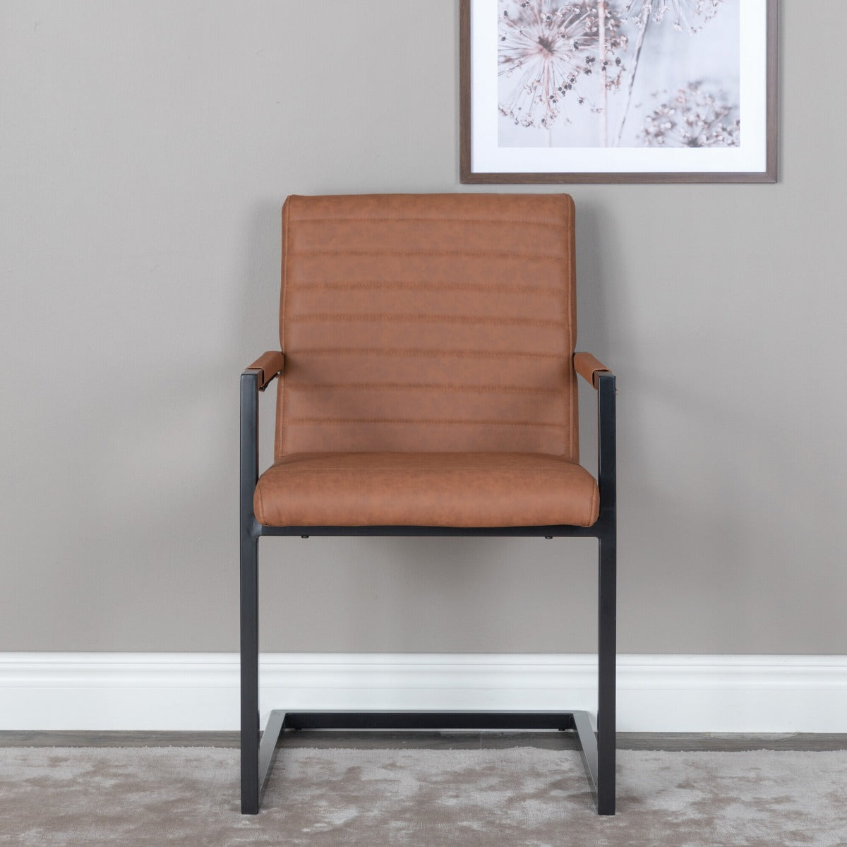 Ontdek de stijlvolle Fjôrd Eetkamerstoel Art in bruin kunstleder, een perfecte aanvulling voor je interieur. Deze eetkamerstoel straalt een industriële charme uit en combineert de warmte van hout met de luxe uitstraling van microvezel en PU-leer. De bruine kleur voegt een vleugje elegantie toe aan elke eetruimte. De stoel is ontworpen voor comfort en duurzaamheid, waardoor hij ideaal is voor dagelijks gebruik. De combinatie van materialen zorgt voor een stevige constructie en een comfortabele zitervaring.