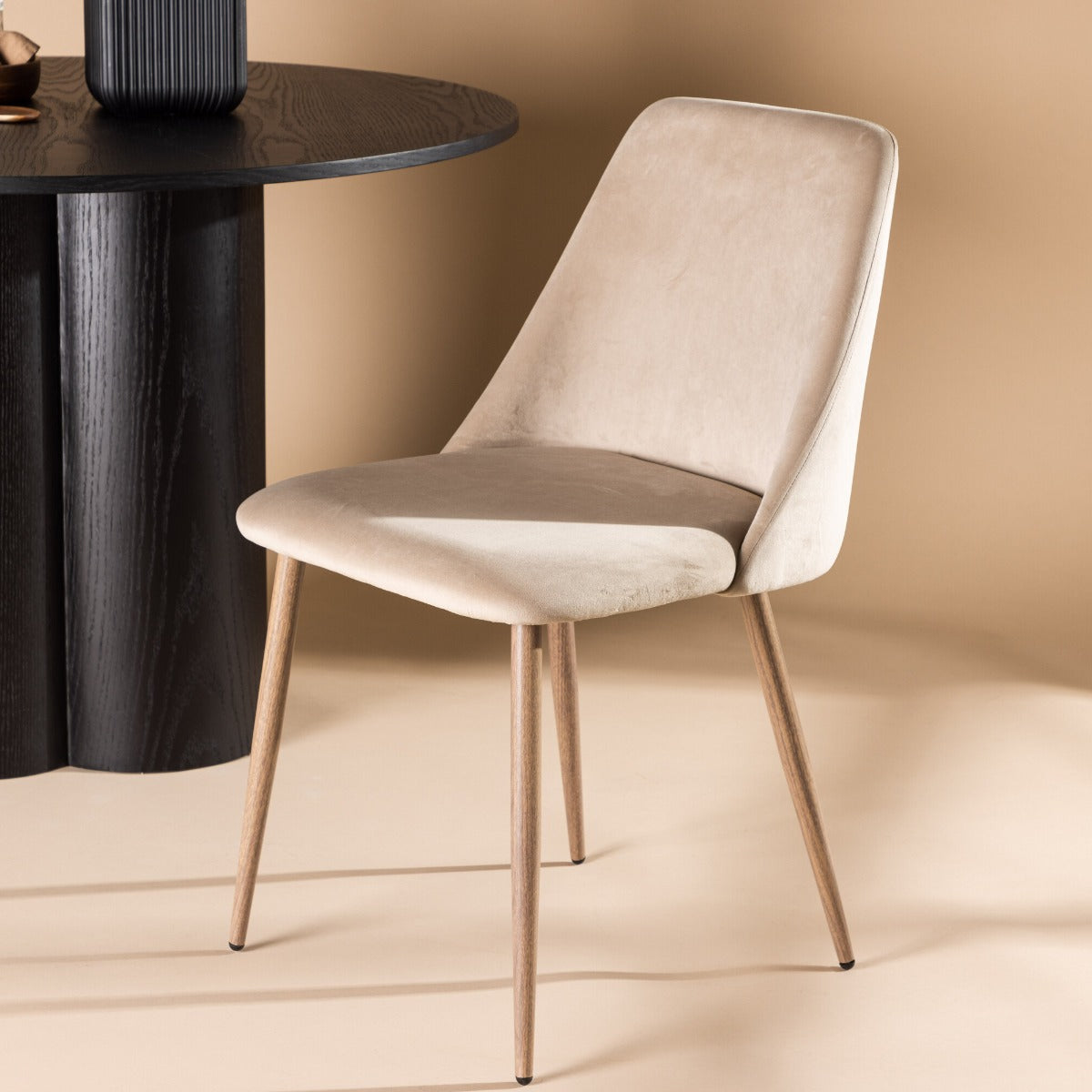 Materiaal: De zitting van de Fjôrd Eetkamerstoel is vervaardigd uit hoogwaardig velvet, wat zorgt voor een zachte en luxe uitstraling. Velvet is een duurzaam materiaal dat bekend staat om zijn elegante glans en comfortabele textuur, waardoor het een uitstekende keuze is voor een eetkamerstoel.