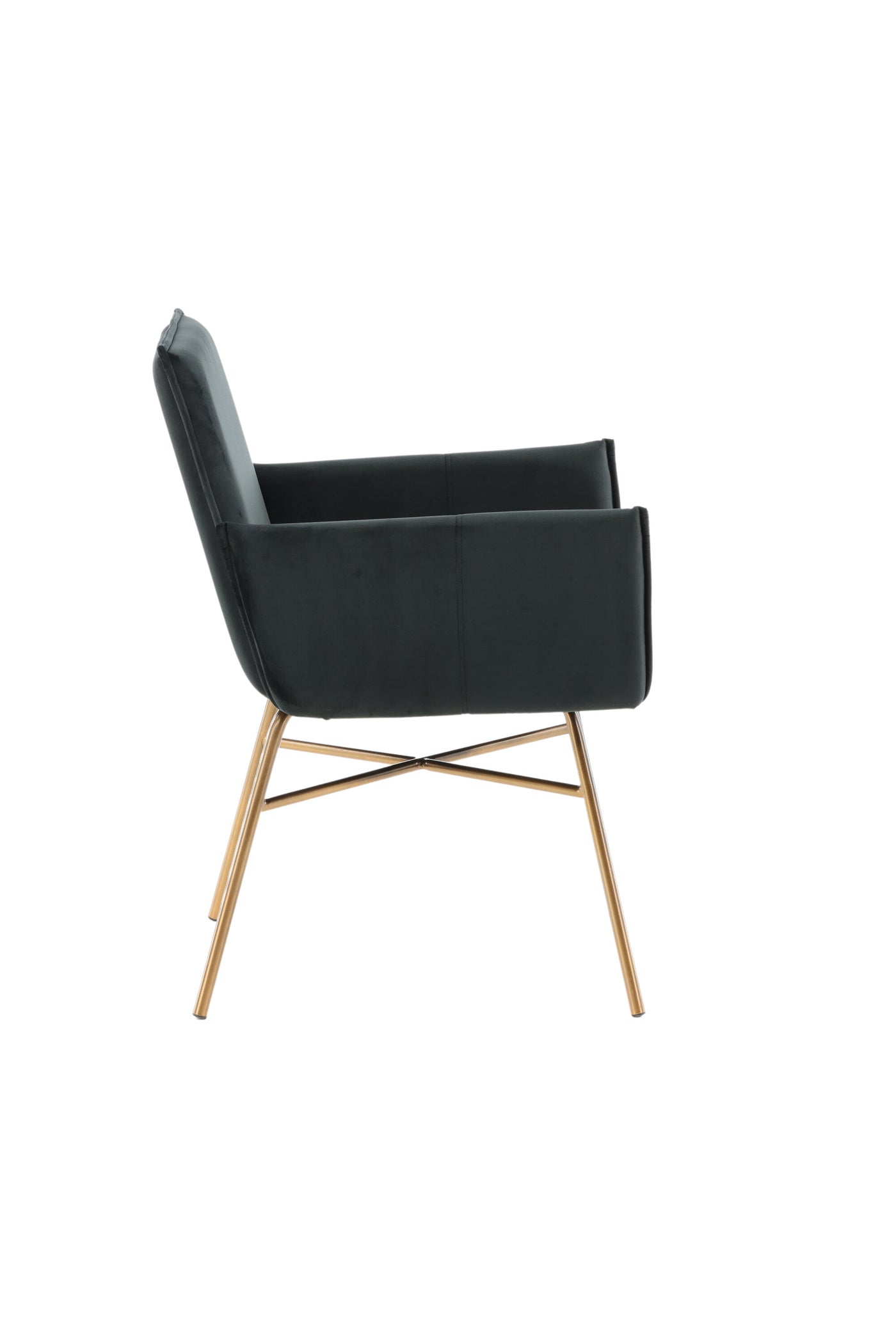 De Fjôrd Eetkamerstoel Petra is een prachtige toevoeging aan je interieur met zijn Urban/Chic stijl. Deze stoel is bekleed met luxe zwart velvet, wat niet alleen een stijlvolle uitstraling geeft, maar ook zorgt voor een comfortabele zitervaring. De combinatie van de distressed koperkleurige accenten en het zwarte velvet maakt deze stoel tot een echte eyecatcher in elke eetkamer. De kwaliteit van het materiaal zorgt ervoor dat de stoel duurzaam is en lang meegaat, ideaal voor dagelijks gebruik.
