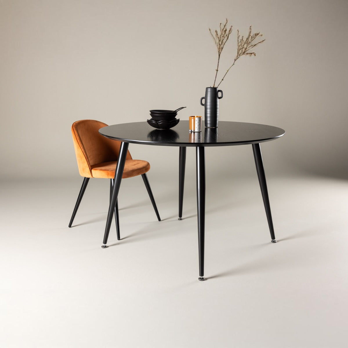 Ontdek de charme van de landelijke stijl met de Fjôrd Eettafel Dipp in een elegante zwarte kleur. Deze ronde tafel, met een diameter van 115 cm, is een perfecte combinatie van stijl en functionaliteit. Het tafelblad is vervaardigd uit MDF met een fijne fineerafwerking, wat zorgt voor een duurzame en onderhoudsvriendelijke oppervlakte. Het stevige stalen onderstel biedt stabiliteit en draagt bij aan de robuuste uitstraling van de tafel. Deze eettafel is ideaal voor gezellige diners en past perfect in zowel moderne als traditionele interieurs.