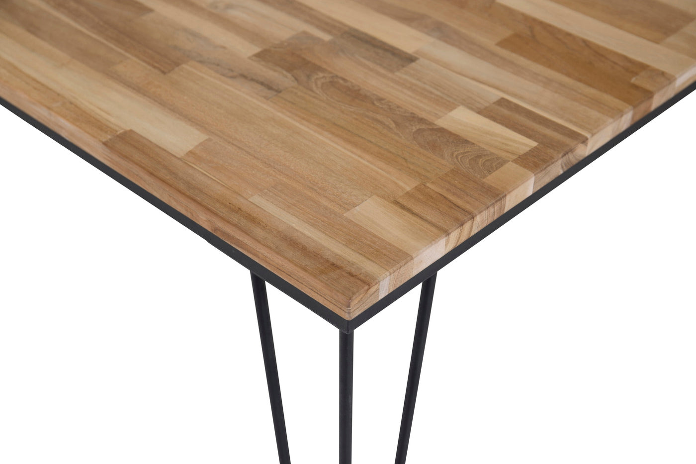 Materiaal: Het tafelblad van de Fjôrd Eettafel Bali is vervaardigd uit teakhout, een materiaal dat bekend staat om zijn sterkte en weerbestendigheid. Het onderstel is gemaakt van stevig metaal, wat zorgt voor stabiliteit en een robuuste uitstraling.