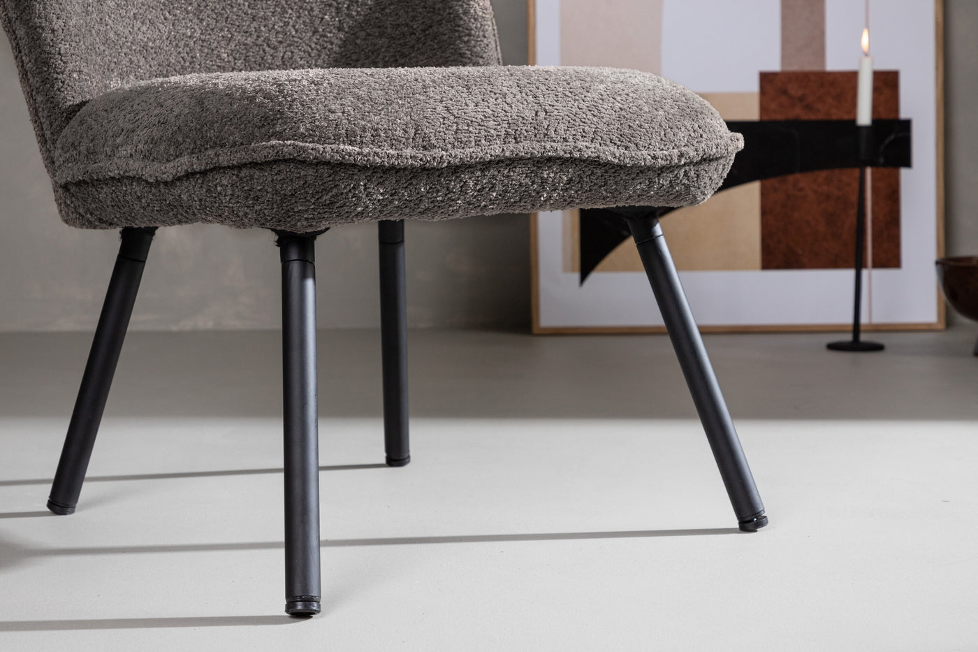 - Comfortabele bouclé stof voor ultiem zitcomfort.