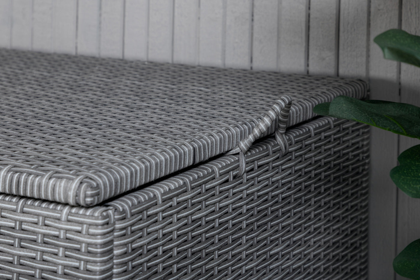 De Fjôrd Kussenbox London in grijs rotan is een prachtige toevoeging aan je Bohemian interieur. Deze stijlvolle kussenbox combineert functionaliteit met esthetiek, waardoor het een eyecatcher is in elke ruimte. Het gebruik van rotan geeft het meubelstuk een natuurlijke uitstraling, terwijl de grijze kleur een moderne touch toevoegt. De kussenbox is van hoge kwaliteit en biedt voldoende ruimte om je kussens of andere items netjes op te bergen. Perfect voor zowel binnen als buiten gebruik, deze kussenbox is een must-have voor wie houdt van een georganiseerde en stijlvolle omgeving.