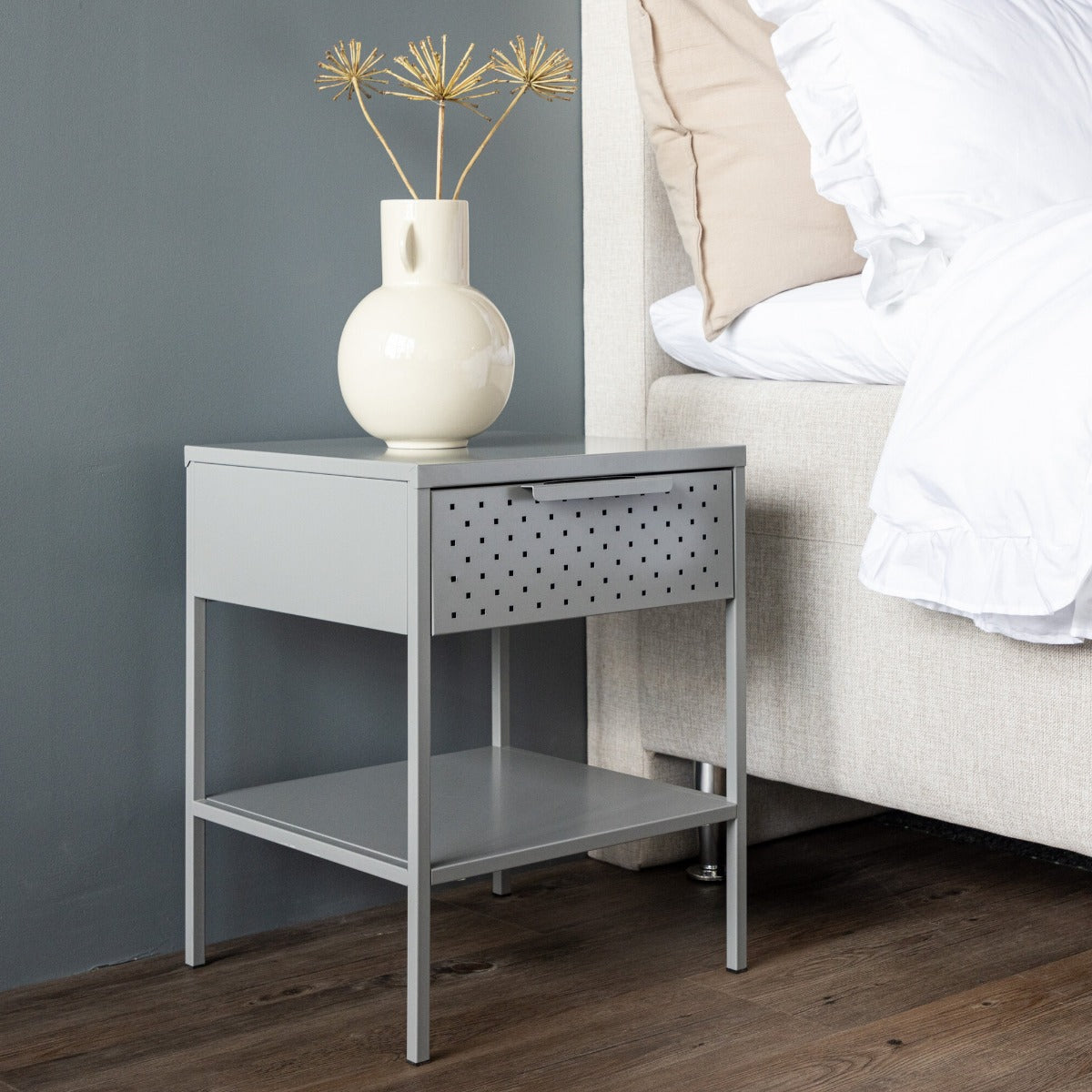 Ontdek het stijlvolle Fjôrd Nachtkastje Sacramento in een elegante lichtgrijze kleur. Dit nachtkastje is een prachtige toevoeging aan je slaapkamer met zijn Scandinavische stijl en hoogwaardige afwerking. Gemaakt van duurzaam staal, biedt het zowel stevigheid als een moderne uitstraling. De lichtgrijze kleur past perfect in elke slaapkamerinrichting en voegt een vleugje verfijning toe. Het nachtkastje is ideaal voor het opbergen van je persoonlijke spullen en zorgt ervoor dat je alles binnen handbereik hebt voor een goede nachtrust.