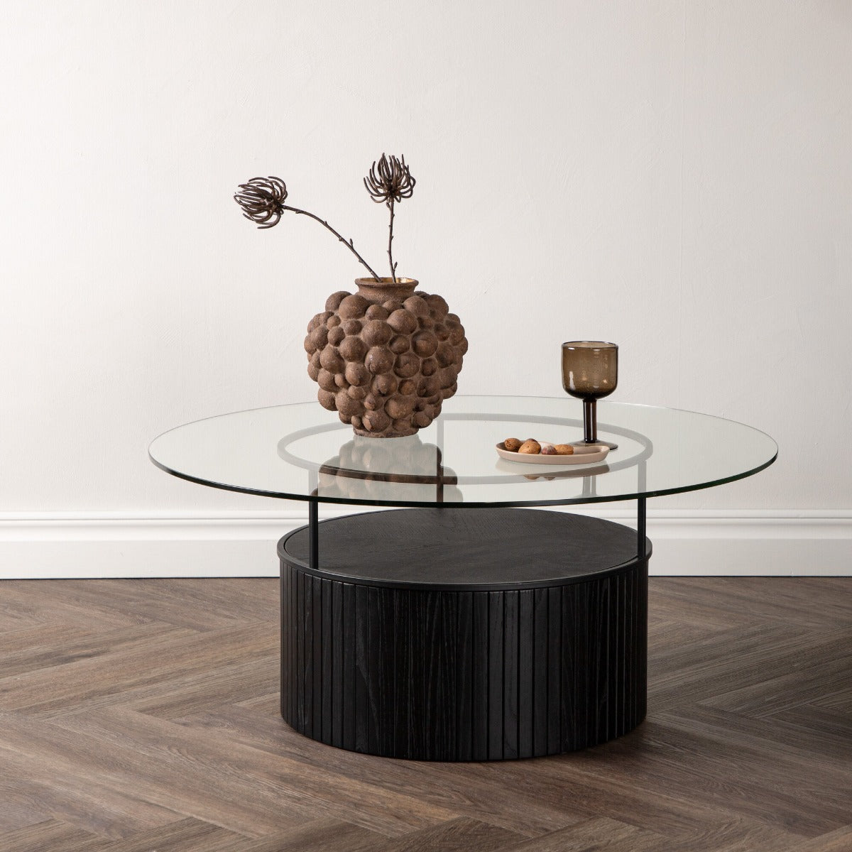 Fjôrd Salontafel Bovall Zwart Helder Glas ⌀90cm