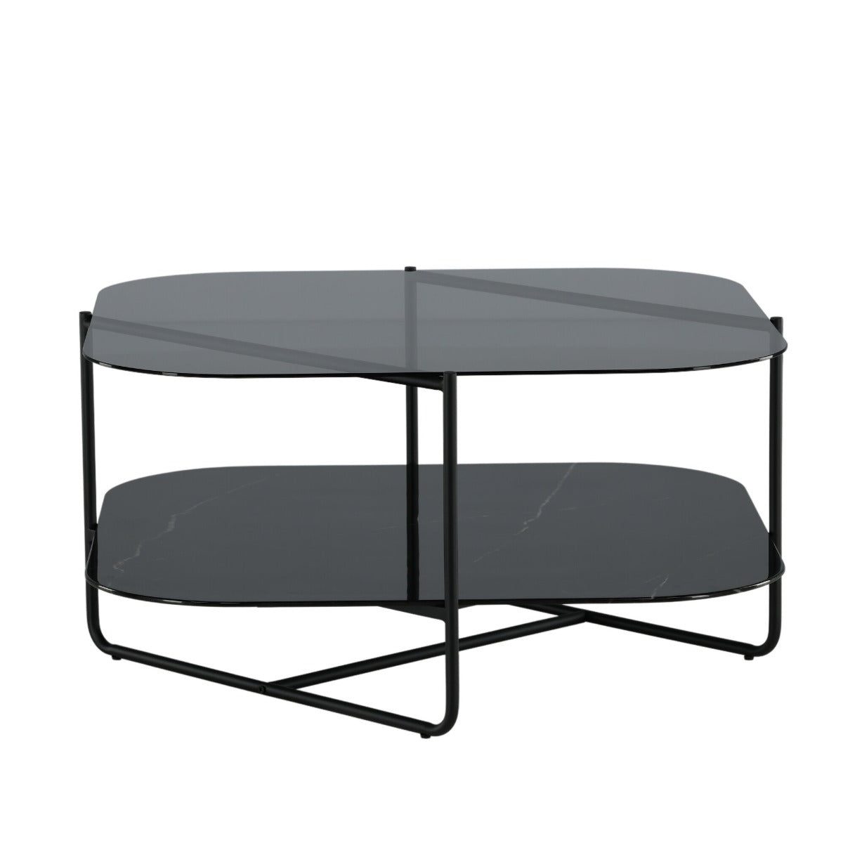 Fjôrd Salontafel Un-line Smoked Glas Met Zwarte Poot
