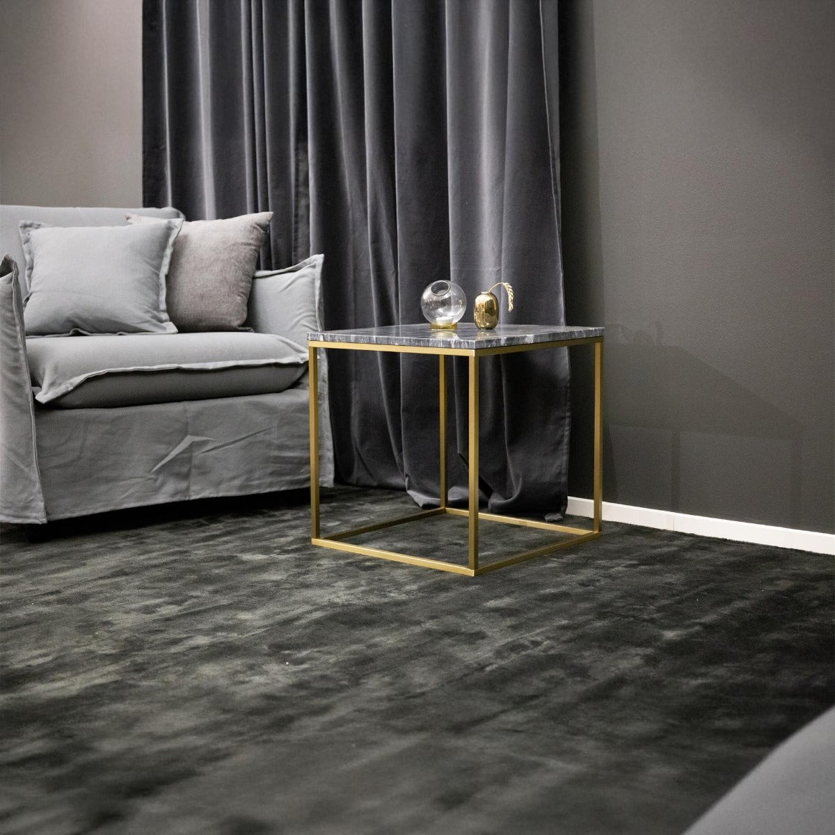 - De grijze sidetable gecombineerd met het gouden onderstel zorgt voor een chique touch binnen jouw interieur.