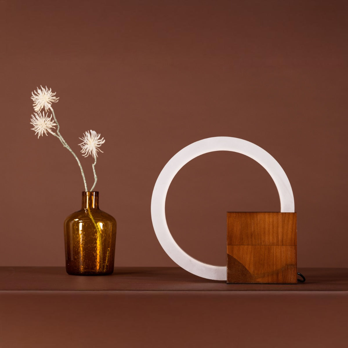 Fjôrd Tafellamp Brive Donker Walnoot/Mokka Wit Arcylic