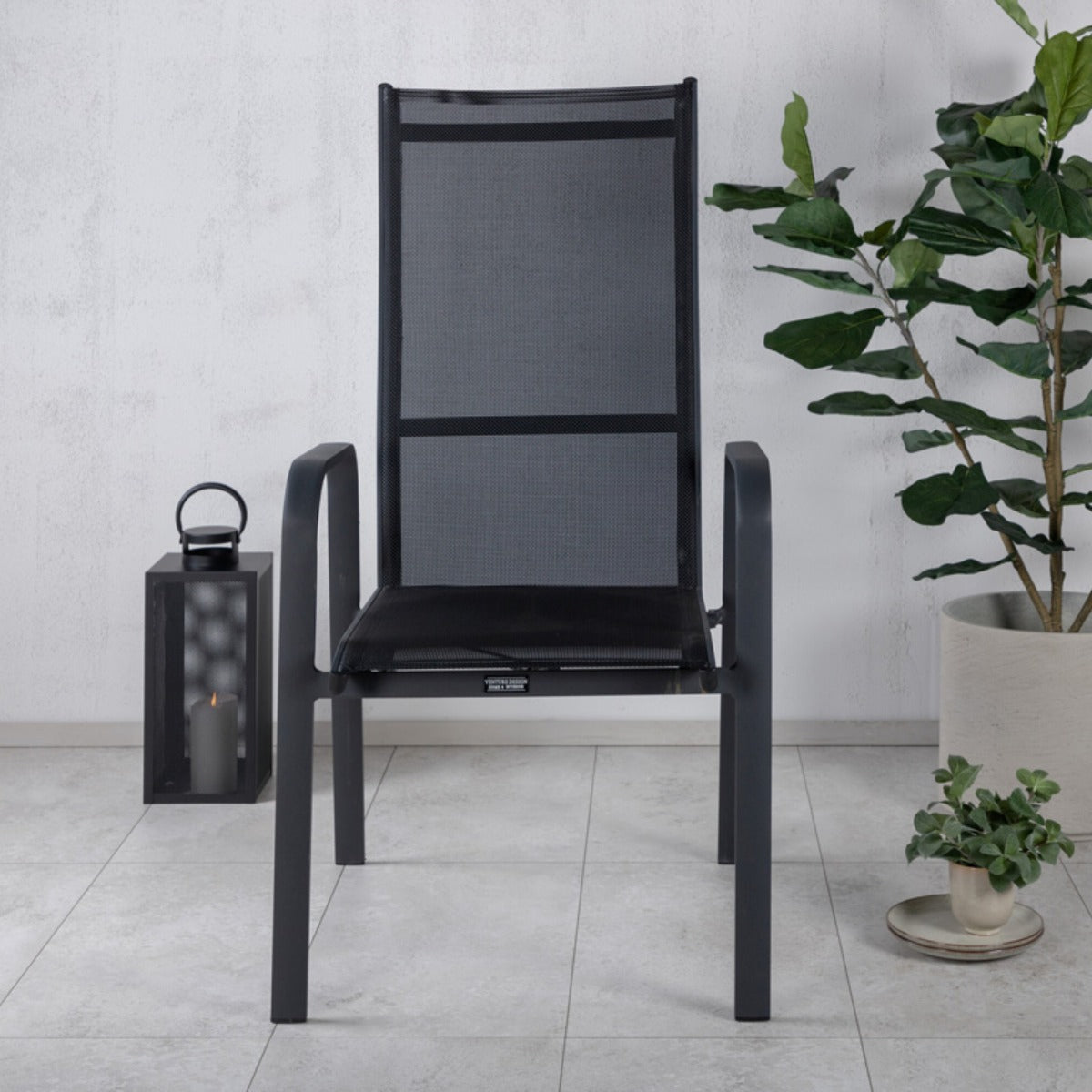 De Fjôrd Tuinstoel Copacabana in zwart is een moderne toevoeging aan je buitenruimte. Deze stijlvolle stoel combineert een aluminium frame met een comfortabele textiele zitting, waardoor hij zowel duurzaam als comfortabel is. De zwarte kleur voegt een vleugje elegantie toe aan je tuin of terras. Dankzij de hoogwaardige materialen is deze stoel bestand tegen verschillende weersomstandigheden en biedt hij langdurig zitcomfort. Of je nu geniet van een zonnige dag of een gezellige avond, de Copacabana tuinstoel is de perfecte keuze voor elke gelegenheid.