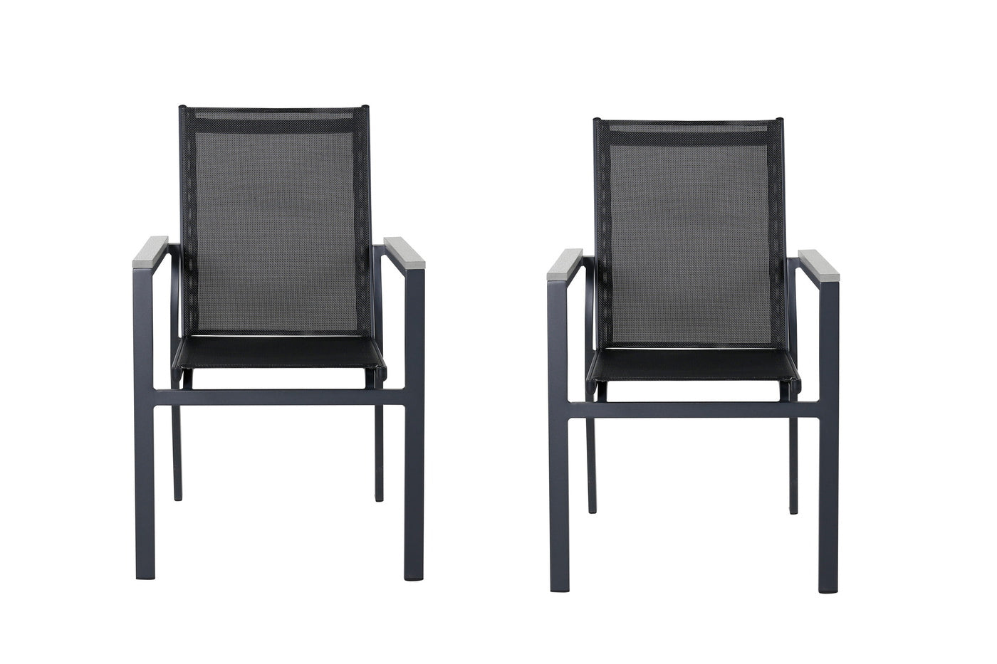 - De doorlopende zwarte kleur zorgt voor een luxe gevoel en het duurzame materiaal aluminium en textilene zorgen ervoor dat de stoel lang meegaat