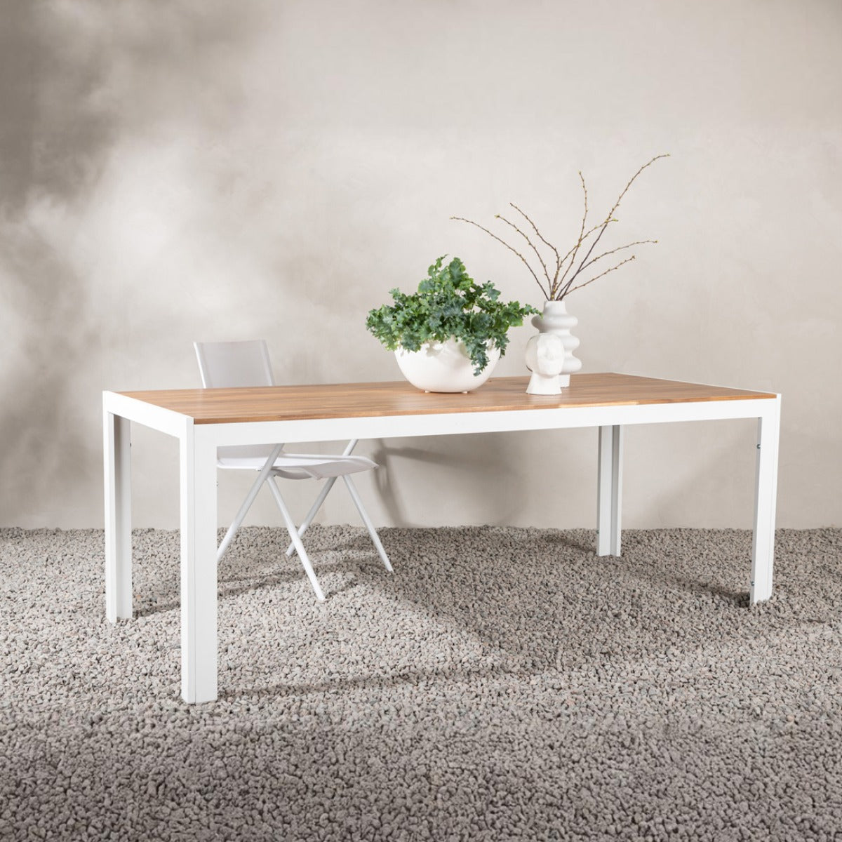 De Fjôrd Tuintafel Bois is een prachtige toevoeging aan je buitenruimte. Met zijn Scandinavische stijl straalt deze tafel eenvoud en elegantie uit. Het tafelblad is vervaardigd van hoogwaardig acaciahout, wat niet alleen zorgt voor een natuurlijke uitstraling, maar ook voor duurzaamheid. De naturel kleur van het hout combineert prachtig met het witte aluminium onderstel, waardoor de tafel een moderne en frisse look krijgt. Deze tuintafel is perfect voor gezellige etentjes in de tuin en biedt voldoende ruimte voor al je gasten. De kwaliteit van het materiaal zorgt ervoor dat je jarenlang plezier zult hebben van deze tafel.