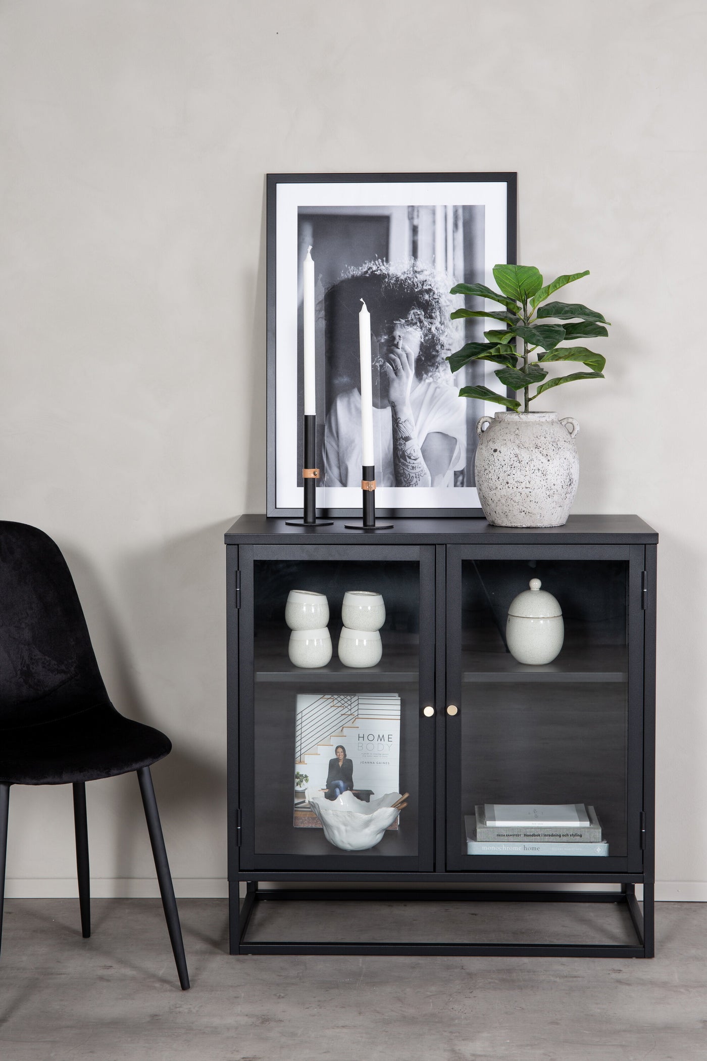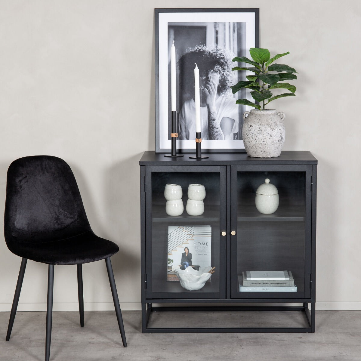 Ontdek de industriële charme van het Fjôrd Vitrinekastje Bakal in een stijlvolle zwarte afwerking. Dit vitrinekastje is vervaardigd uit hoogwaardig glas, wat niet alleen een moderne uitstraling geeft, maar ook de inhoud prachtig tentoonstelt. De strakke lijnen en het robuuste ontwerp maken het een perfecte aanvulling voor elk interieur dat een vleugje industriële flair kan gebruiken. Met zijn compacte formaat is het ideaal voor kleinere ruimtes, terwijl het toch voldoende opbergruimte biedt met zijn twee vakken. Dit kastje is een eyecatcher die functionaliteit en stijl naadloos combineert.