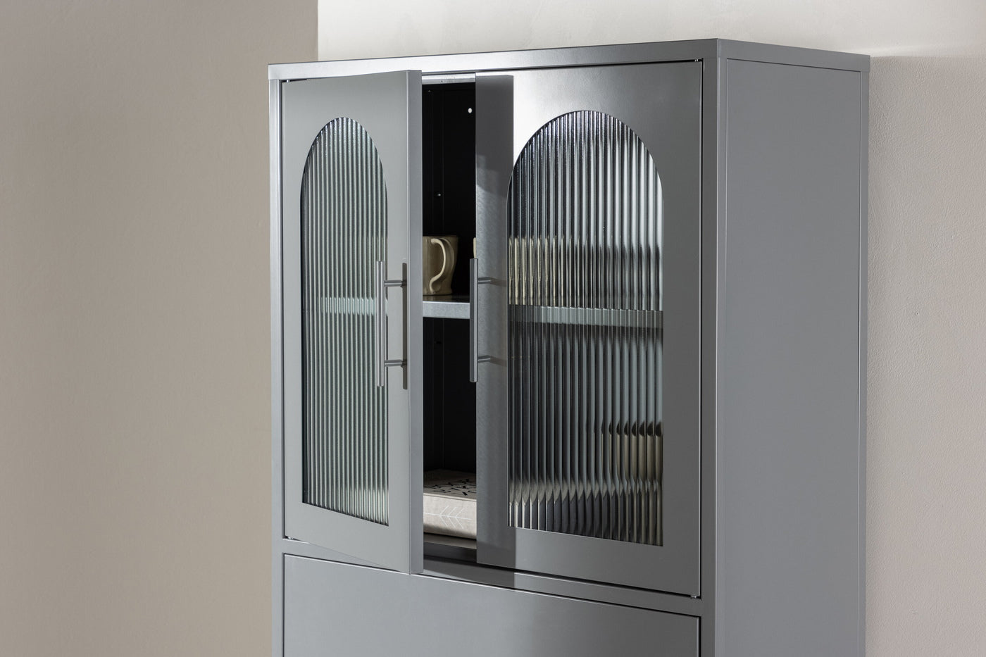 Ontdek de Fjôrd Wandkast La in een stijlvolle lichtgrijze kleur, een perfecte aanvulling op je industriële interieur. Deze wandkast combineert de robuuste uitstraling van metaal met de verfijning van glas, wat zorgt voor een eigentijdse en elegante look. De kast biedt niet alleen een esthetisch aantrekkelijke oplossing voor je opbergruimte, maar is ook van hoge kwaliteit en duurzaam in gebruik. Of je nu boeken, decoratieve items of andere persoonlijke spullen wilt opbergen, deze kast is veelzijdig en functioneel.