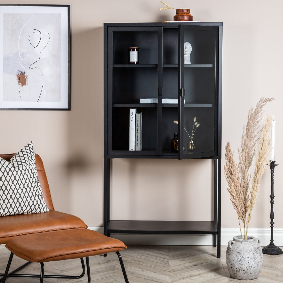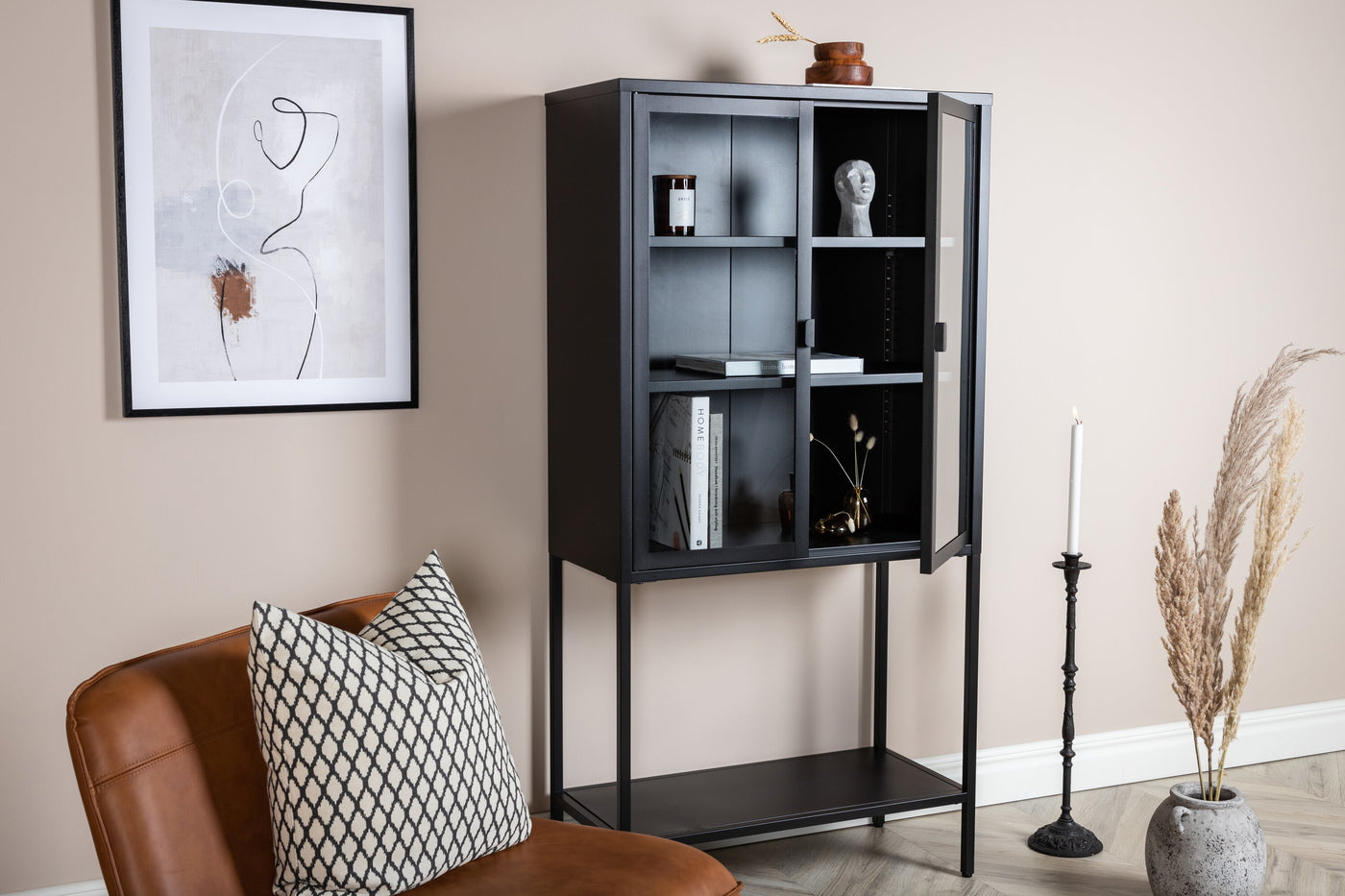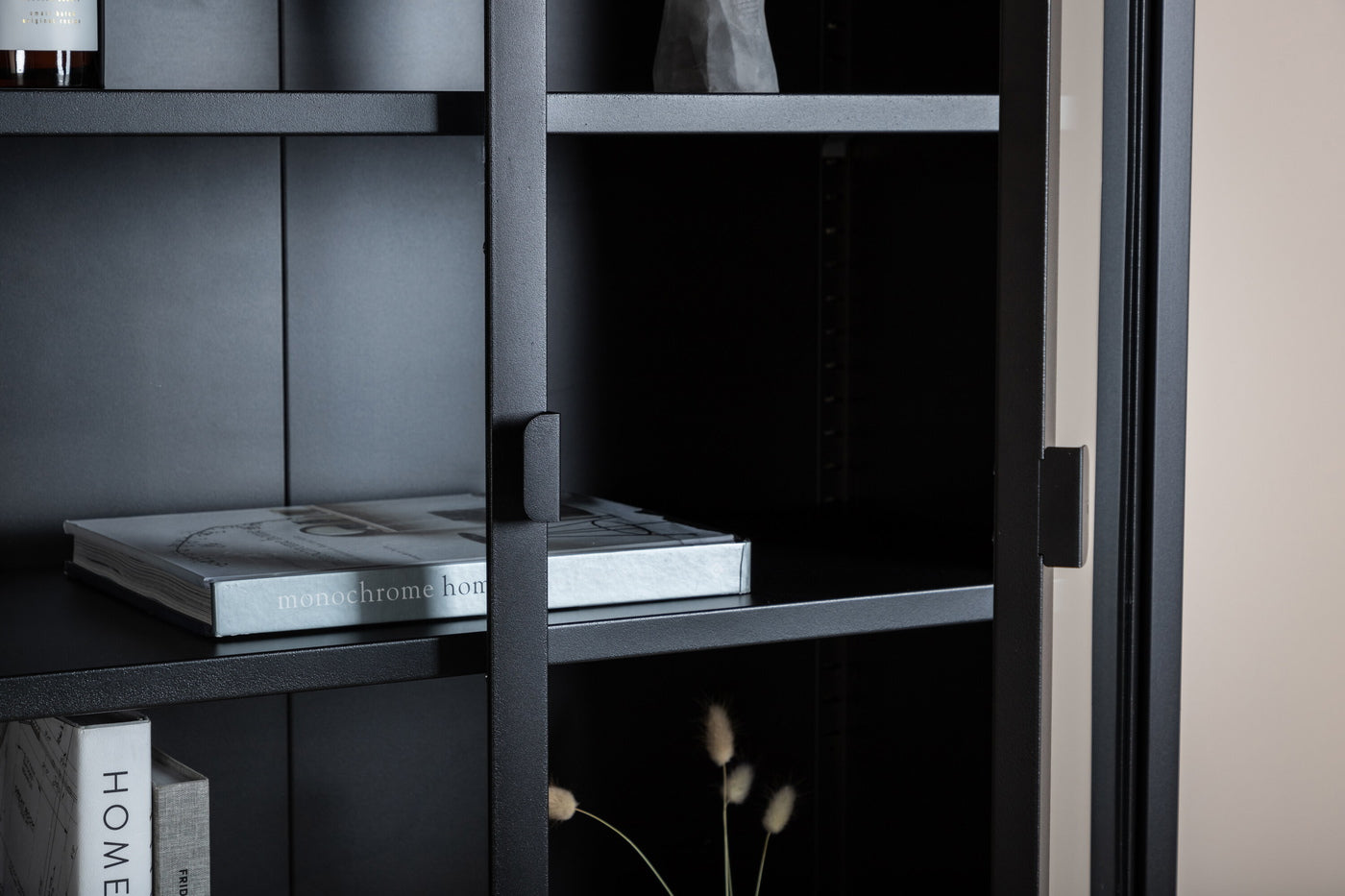 Materiaal: De Fjôrd Wandkast Misha is gemaakt van een stevige combinatie van metaal en glas. Deze materialen zorgen voor een solide constructie en een moderne uitstraling, waardoor de kast een perfecte aanvulling is op een industrieel interieur.