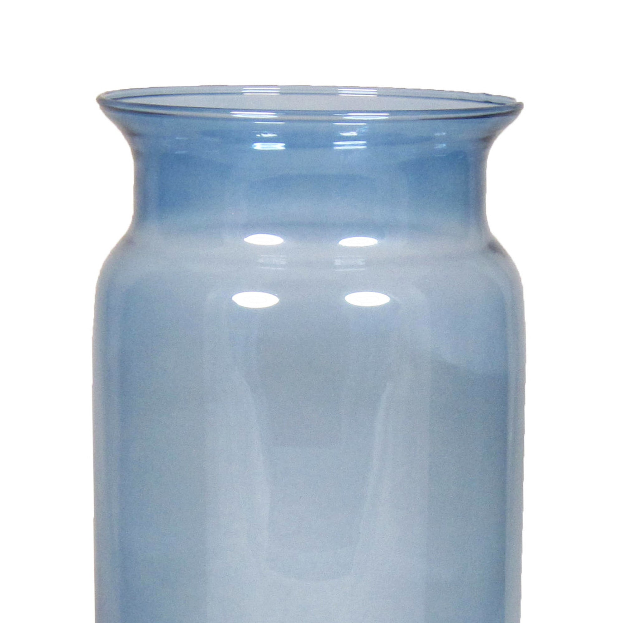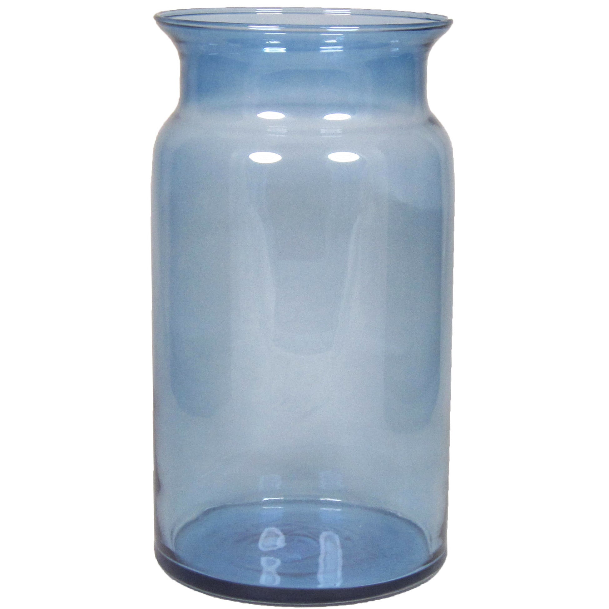 Glazen melkbus vaas/vazen blauw 7 liter smalle hals 16 x 29 cm. Een mooie glazen vaas met een smalle hals. Geschikt om boeketten en losse bloemen in te plaatsen, maar ook voor leuke (seizoensgebonden) decoratie.