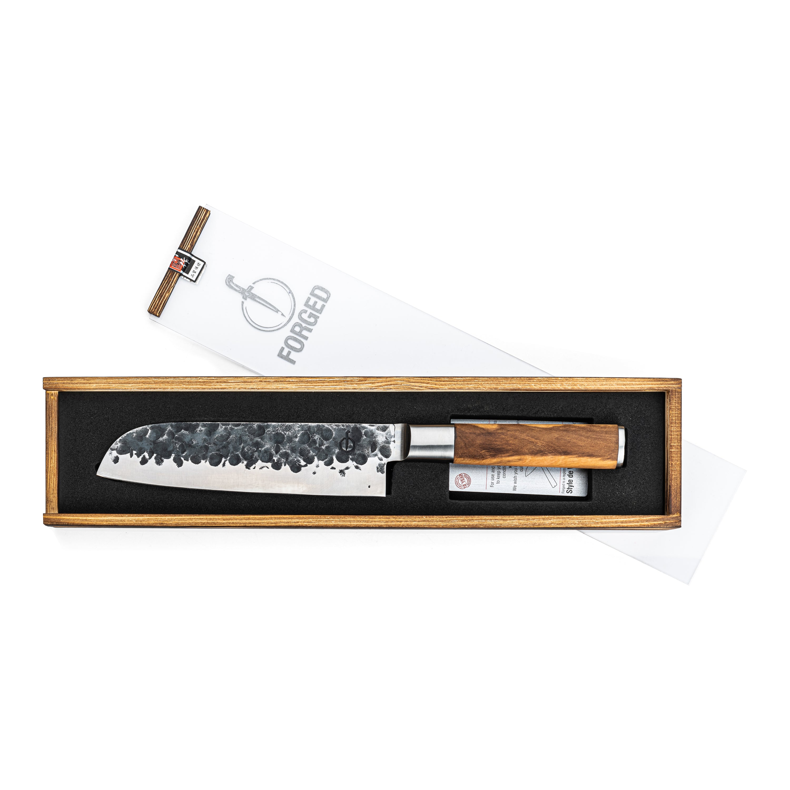 Mooie messen waar je hart sneller van gaat kloppen, waar je het liefst de hele dag mee in de keuken wil doorbrengen. In dat rijtje horen de Forged messen thuis. Deze robuuste, opvallende messen zijn volledig met de hand gesmeden!