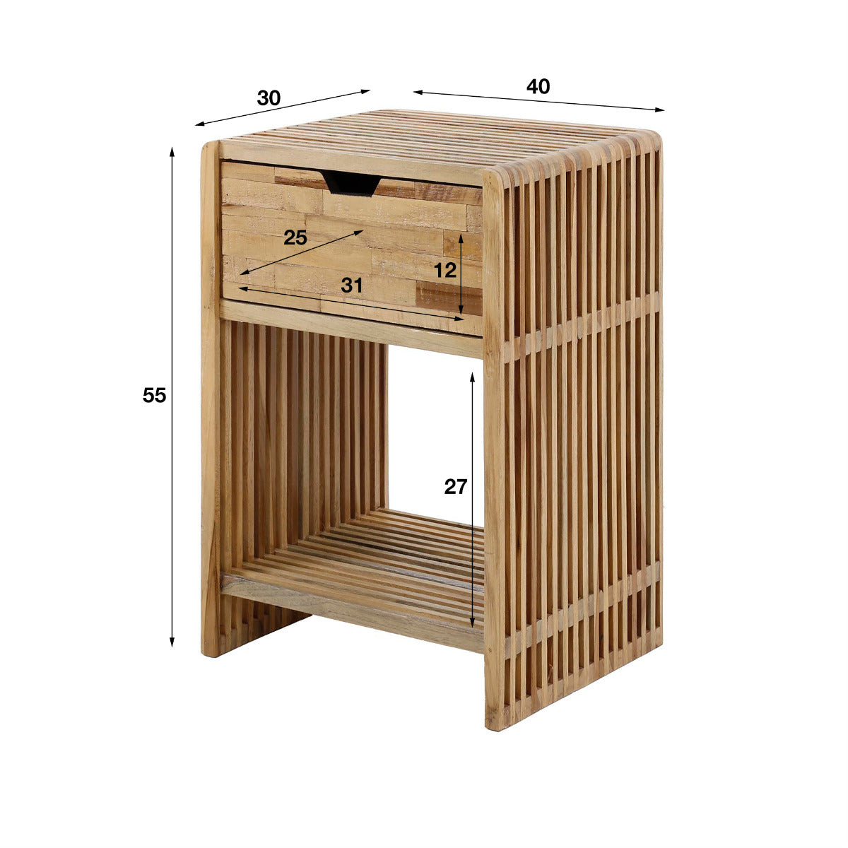 Fraaai Carolyn nachtkastje 1L rib - teakhout verweerd