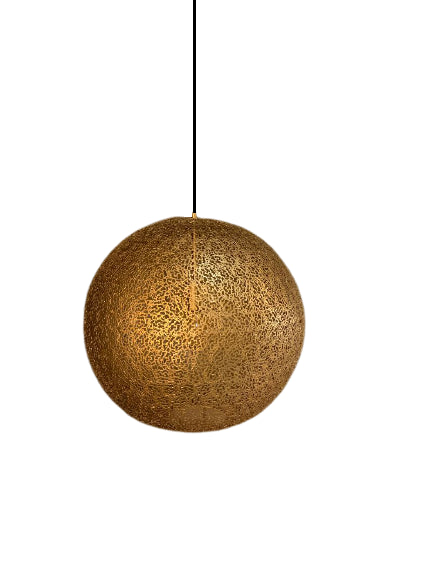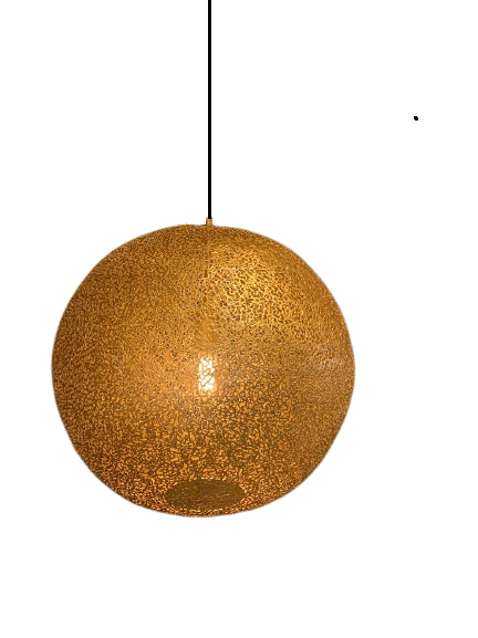 In deze hanglamp gaat een lichtbron met een E27-fitting. Deze hanglamp wordt zonder lichtbron geleverd, zo kan je kiezen voor de lichtbron die je wilt toepassen. Zowel de binnenkant als de buitenkant van de bol in uitgevoerd in de mooie warme kleur mat goud.