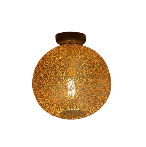In deze plafondlamp gaat een lichtbron met een E27-fitting. Deze plafondlamp wordt zonder lichtbron geleverd, zo kan je kiezen voor de lichtbron je wilt toepassen. Zowel de binnenkant als de buitenkant van de bol in uitgevoerd in de mooie warme kleur mat goud.