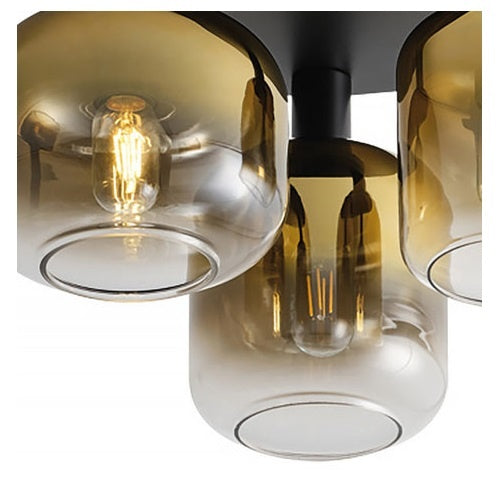 De Vario plafonniere is een prachtige grote plafondlamp met drie verschillende gouden glazen. De drie glazen verlopen gelijkmatig van goud naar helder, dit geeft de plafondlamp een nog luxere uitstraling.