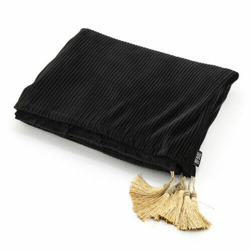 Het deken Royalty is een rijke toevoeging voor ieder interieur. Mooi fluweel zwart met het gouden detail en de rijke velvet stof geven je woonruimte behaaglijke boost. Plaid Royalty heeft niet alleen een mooie uitstraling, maar dankzij de zachte velvet stof is hij ook nog een enorm comfortabel. OnderhoudMet de hand wassen in koud water