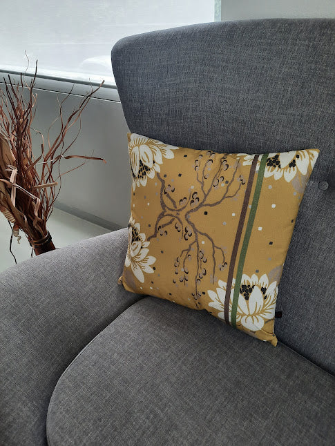 FURNILUX - Set van 2 Sierkussens-45x45 cm -Bloem oker
