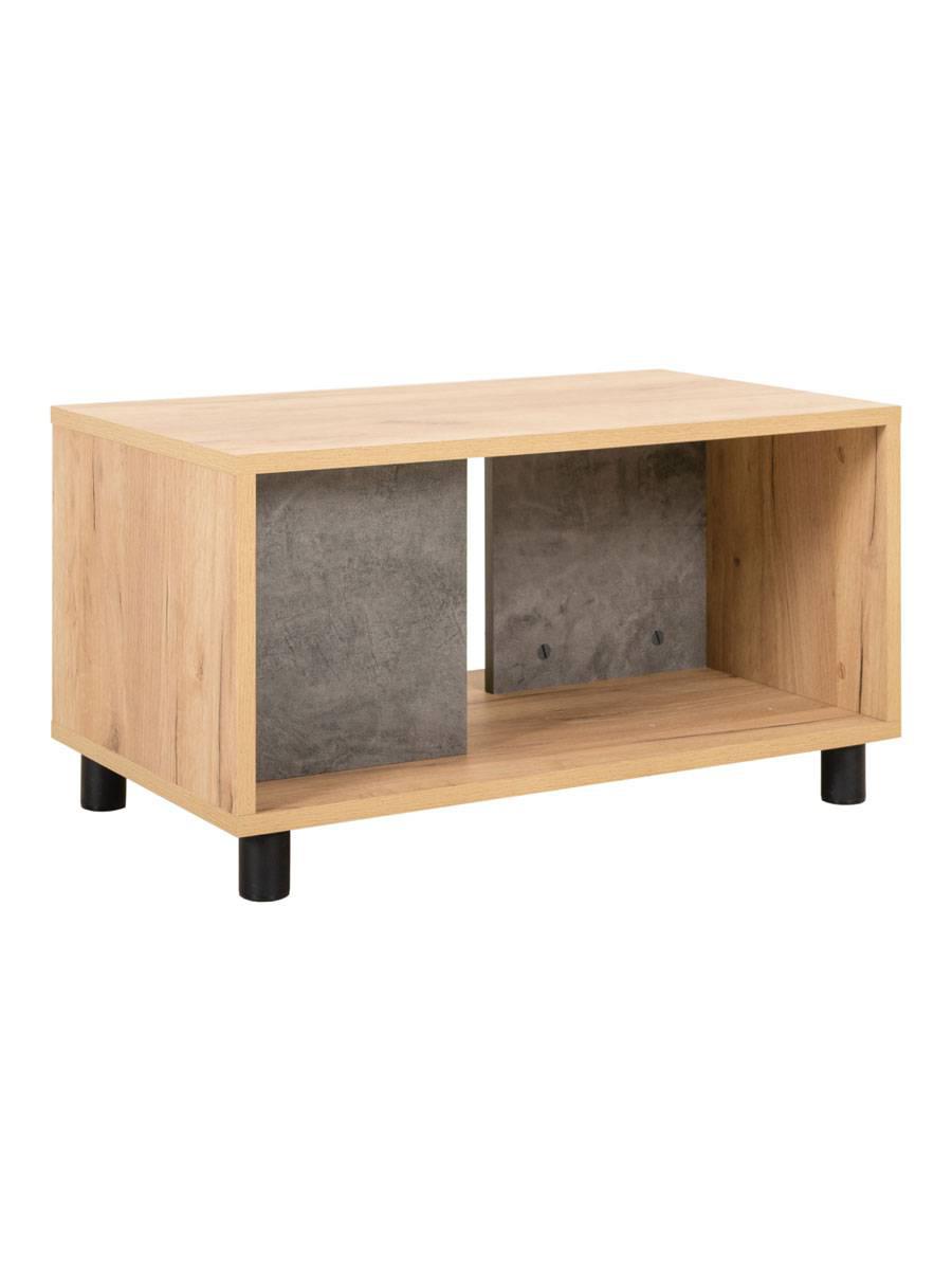 Salontafel Sharons choice is een tafel met een moderne uitstraling. De tafel is gemaakt in een warme, eiken kleur. In het midden van de bijzettafel is een extra grijze plank geplaatst, zodat er opbergruimte ontstaat. Handig voor tijdschriften of afstandsbedieningen. De salontafel Sharons choice heeft een moderne, industriële uitstraling. Is deze salontafel perfect voor jouw woonkamer? Wat deze salontafel bijzonder maakt: • Industriële look • Zeer stevig • Opbergruimte • Veelzijdig te gebruiken Specificaties: • Materiaal: MDF Hout • Kleur: Grijs en Hout • Afmeting: 65 x 39 x 35 cm (lxbxh) • Voorgemonteerd: Ja • Verstelbaar in hoogte: Nee