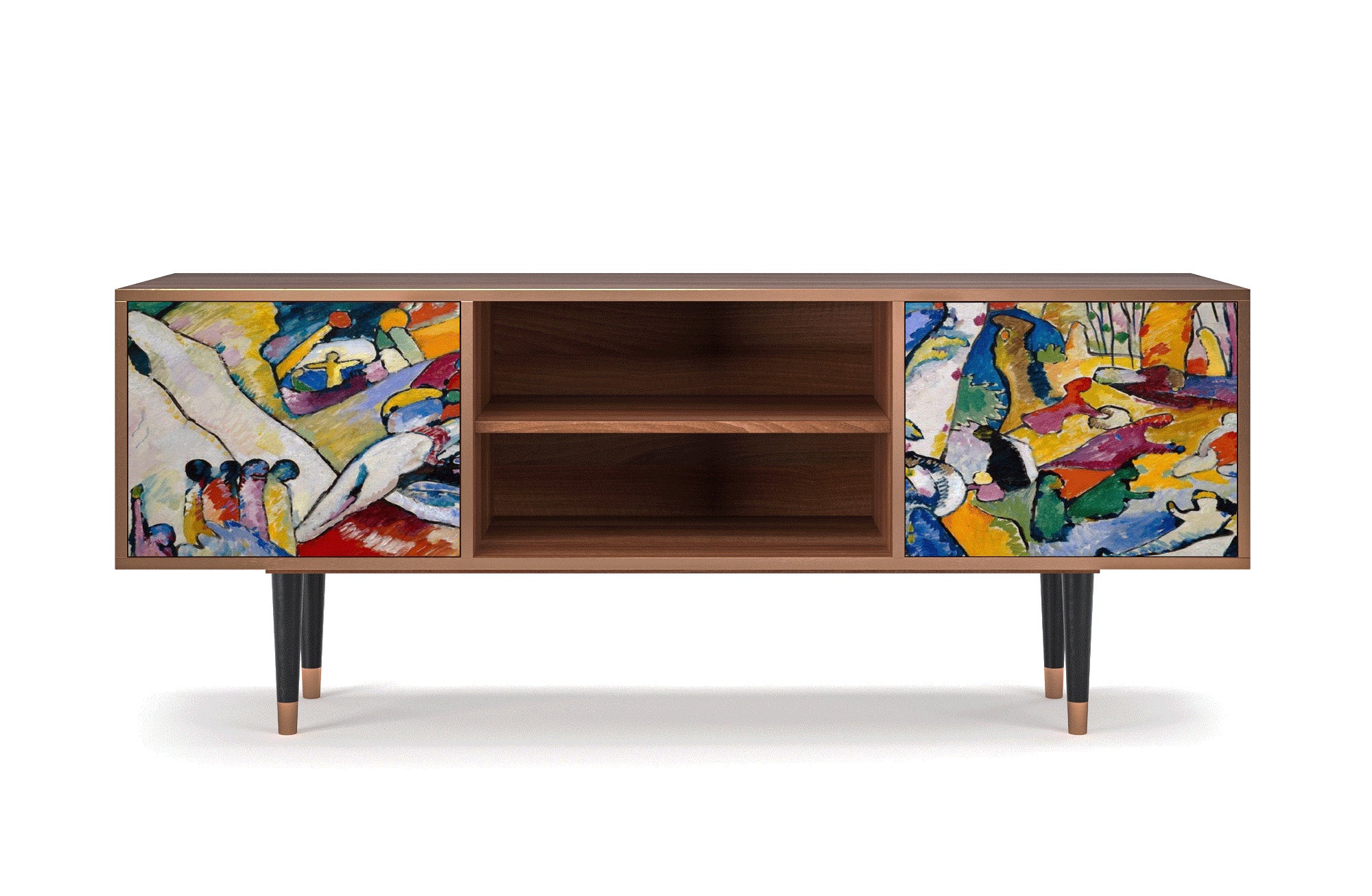 - Pieds en bois massif avec embouts en cuivre