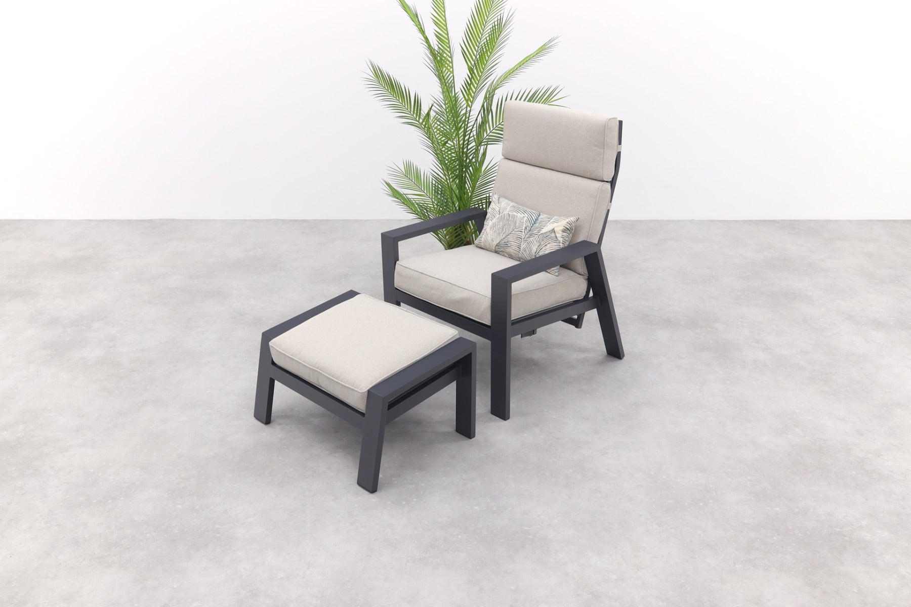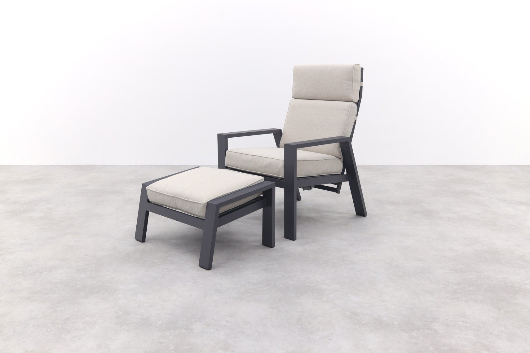 Garden Impressions Max loungestoel + voetenbank - Carbon black/Sand