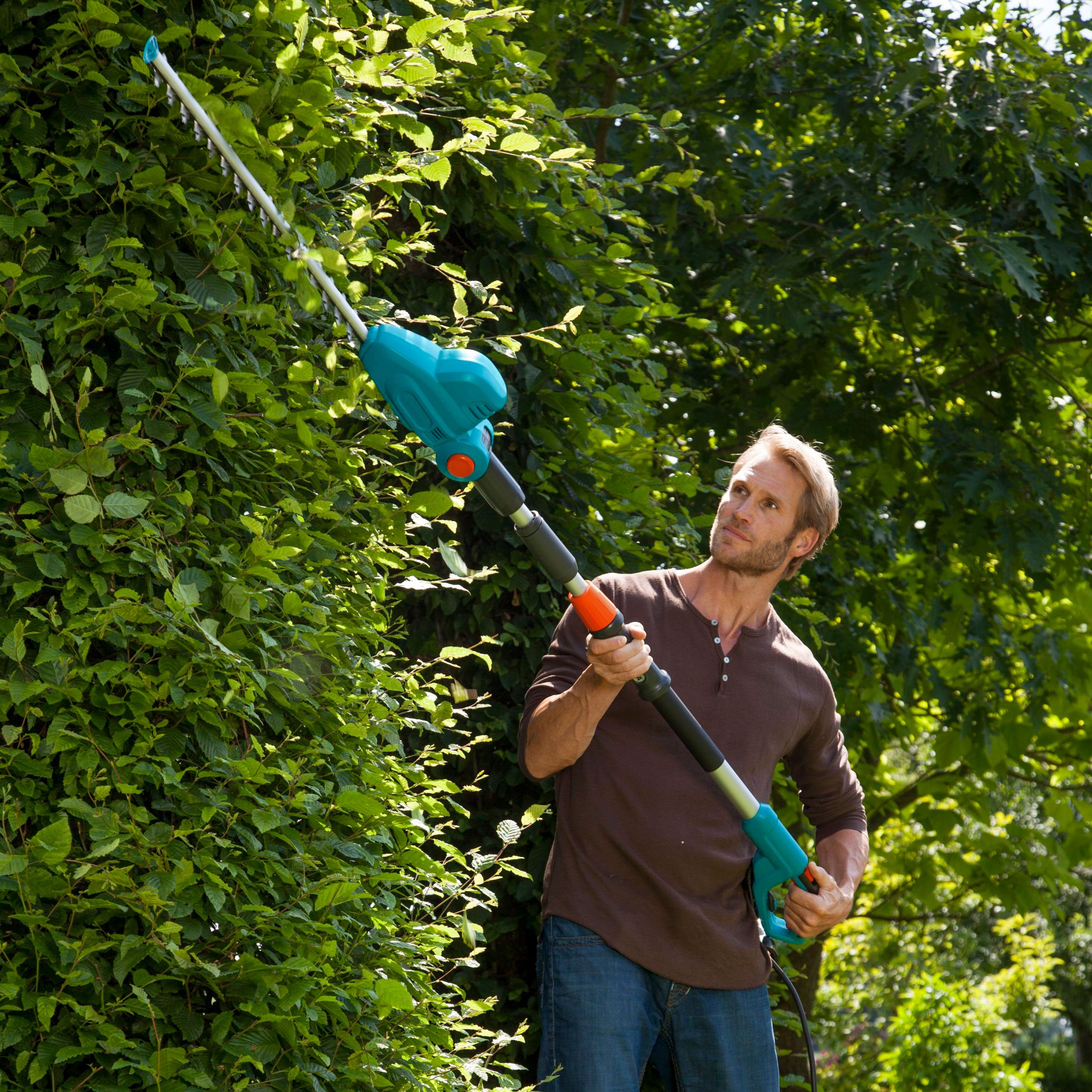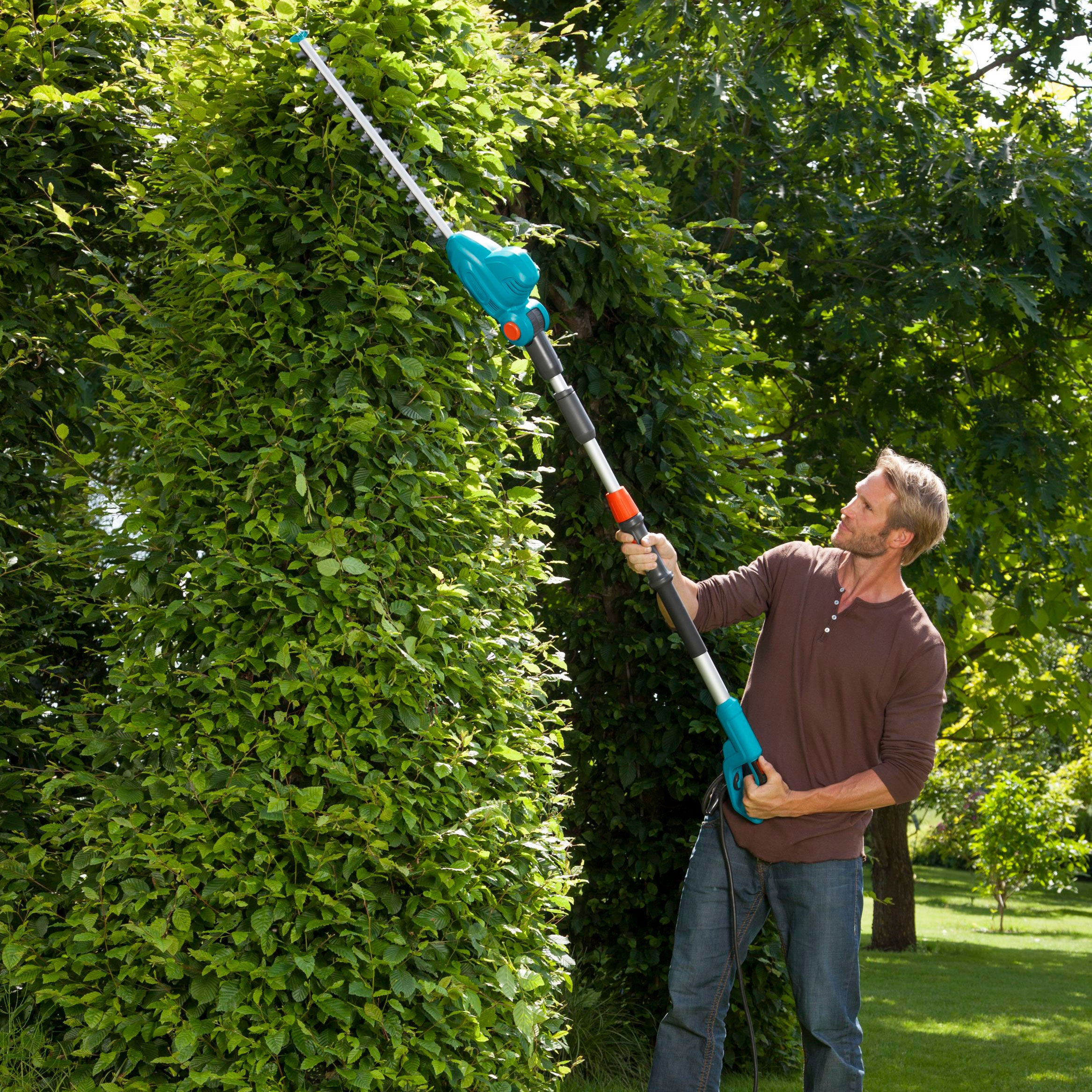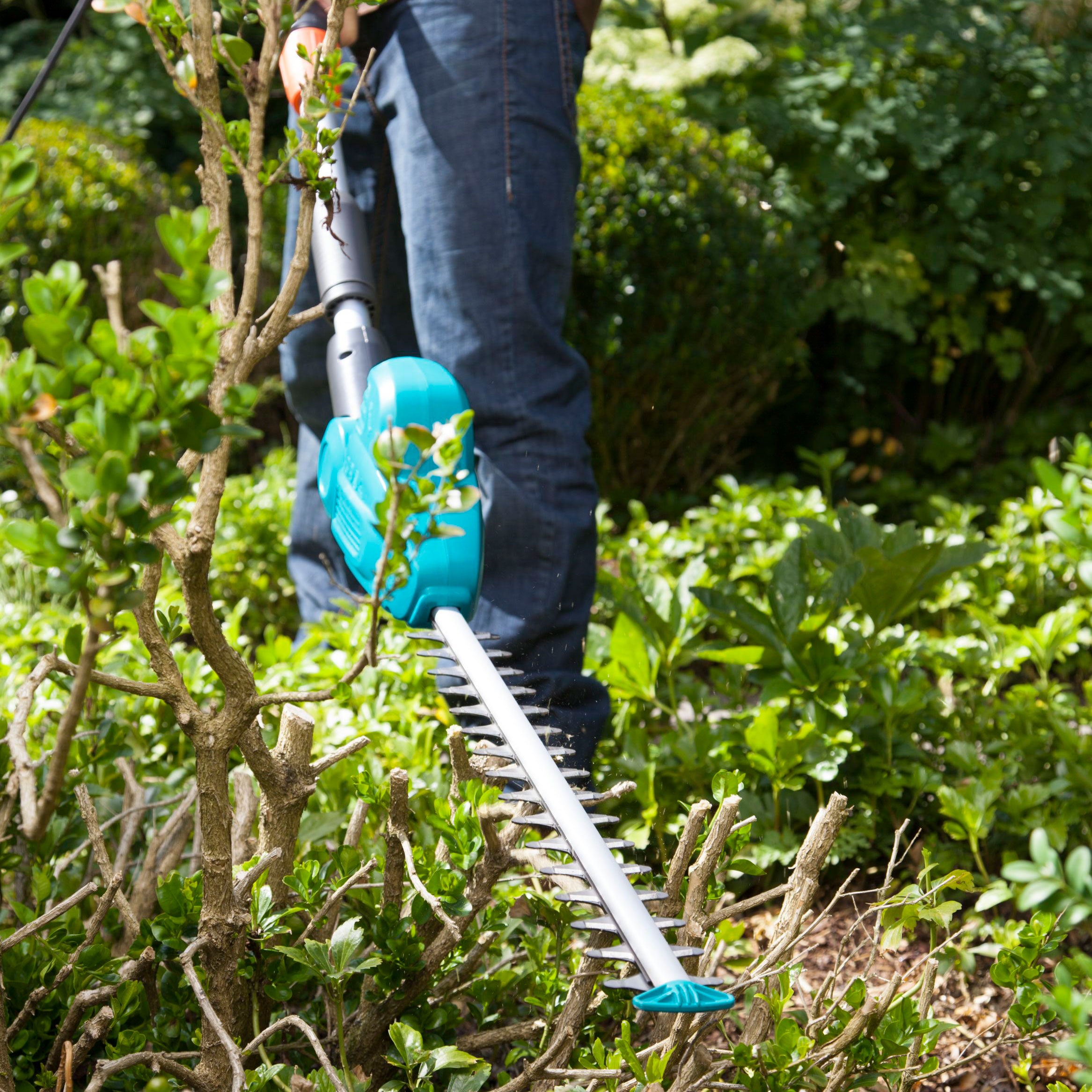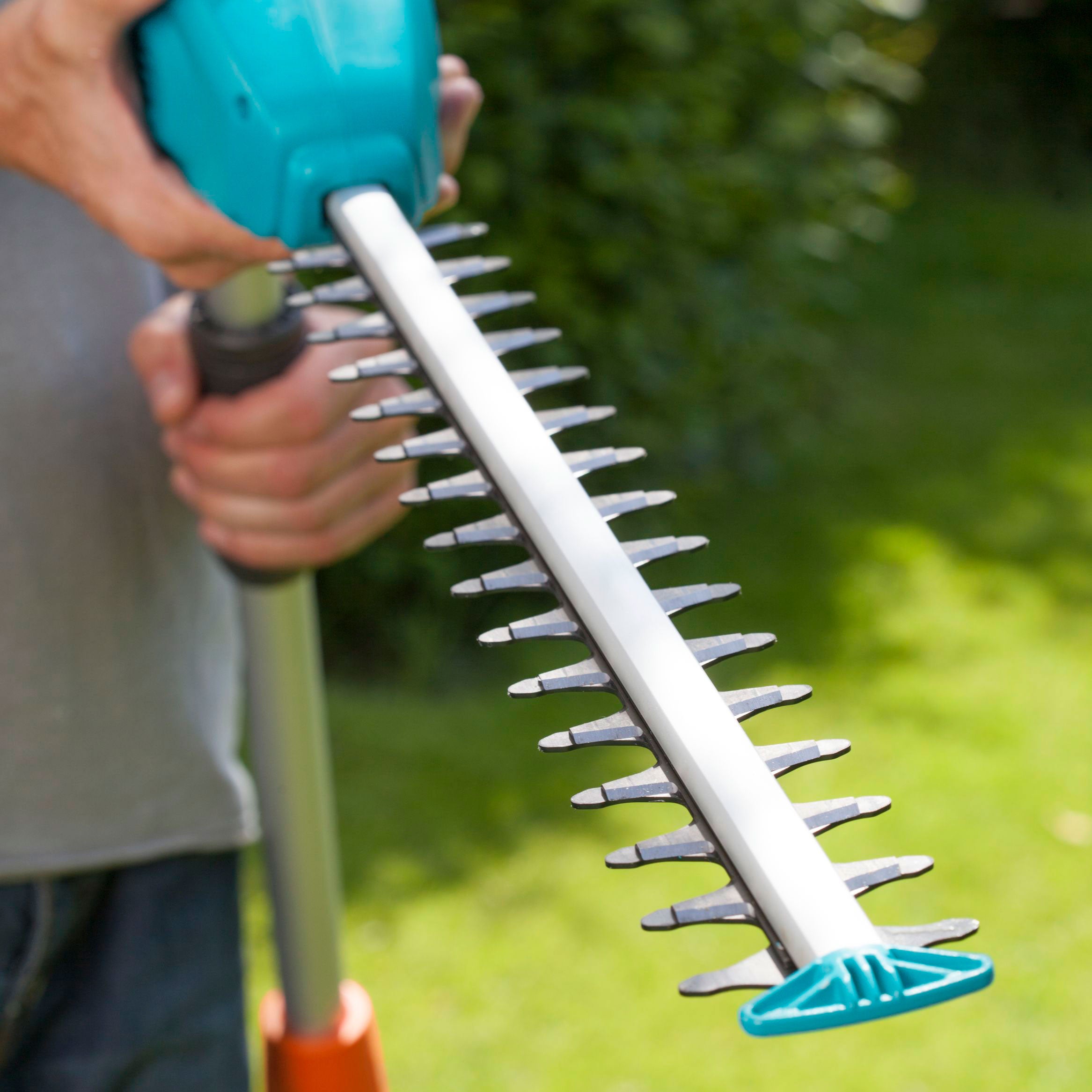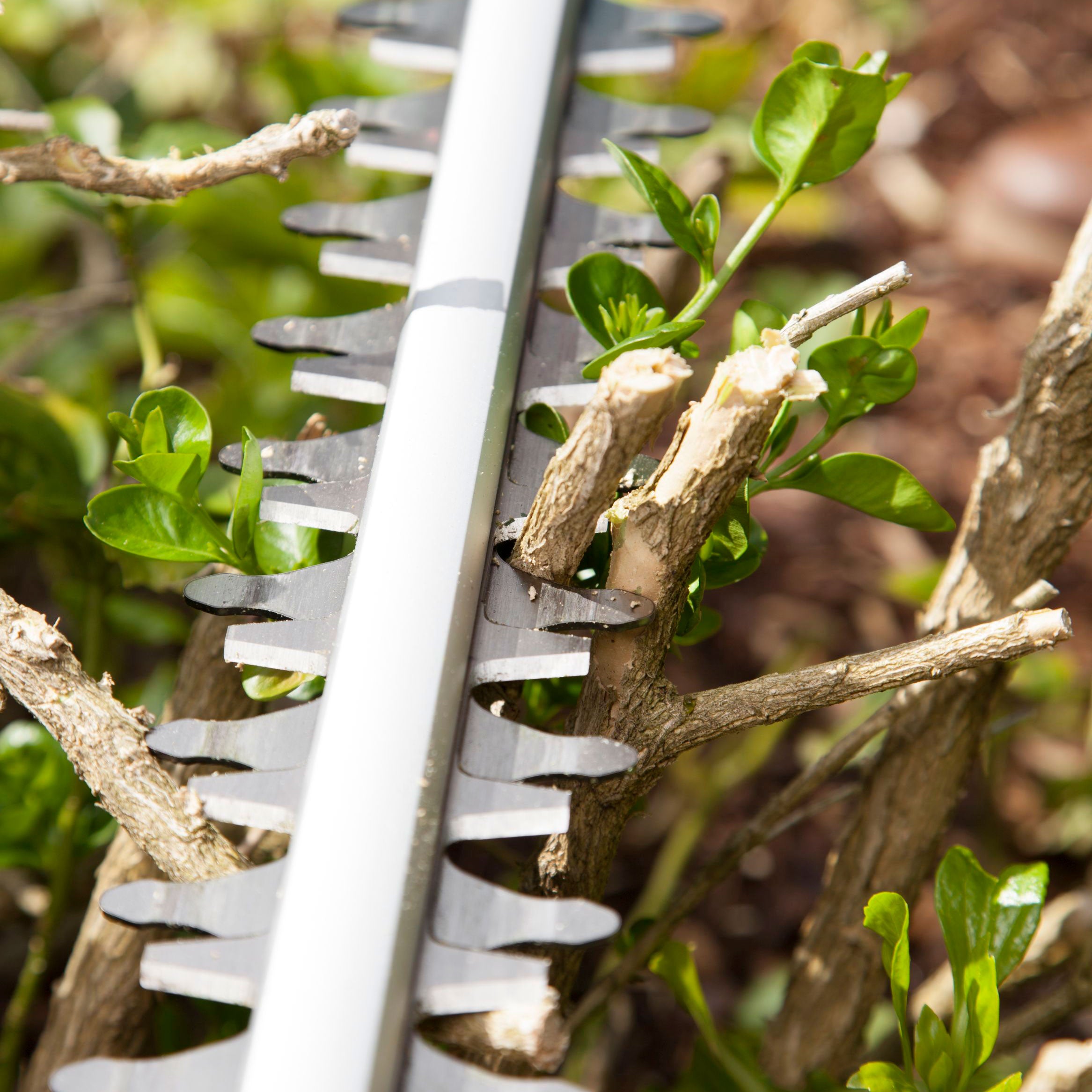 Zeer ruime reikwijdte van 3.5 meter Met een maximale reikwijdte van 3,5 meter is deze telescoop heggenschaar perfect voor het snoeien van hoge heggen, zonder daarbij gebruik te hoeven maken van onstabiele ladders of trappen. Ook voor het snoeien van bodembedekkers is deze heggenschaar ideaal: bukken hoeft niet meer dus van een pijnlijke rug zul jij geen last meer hebben.