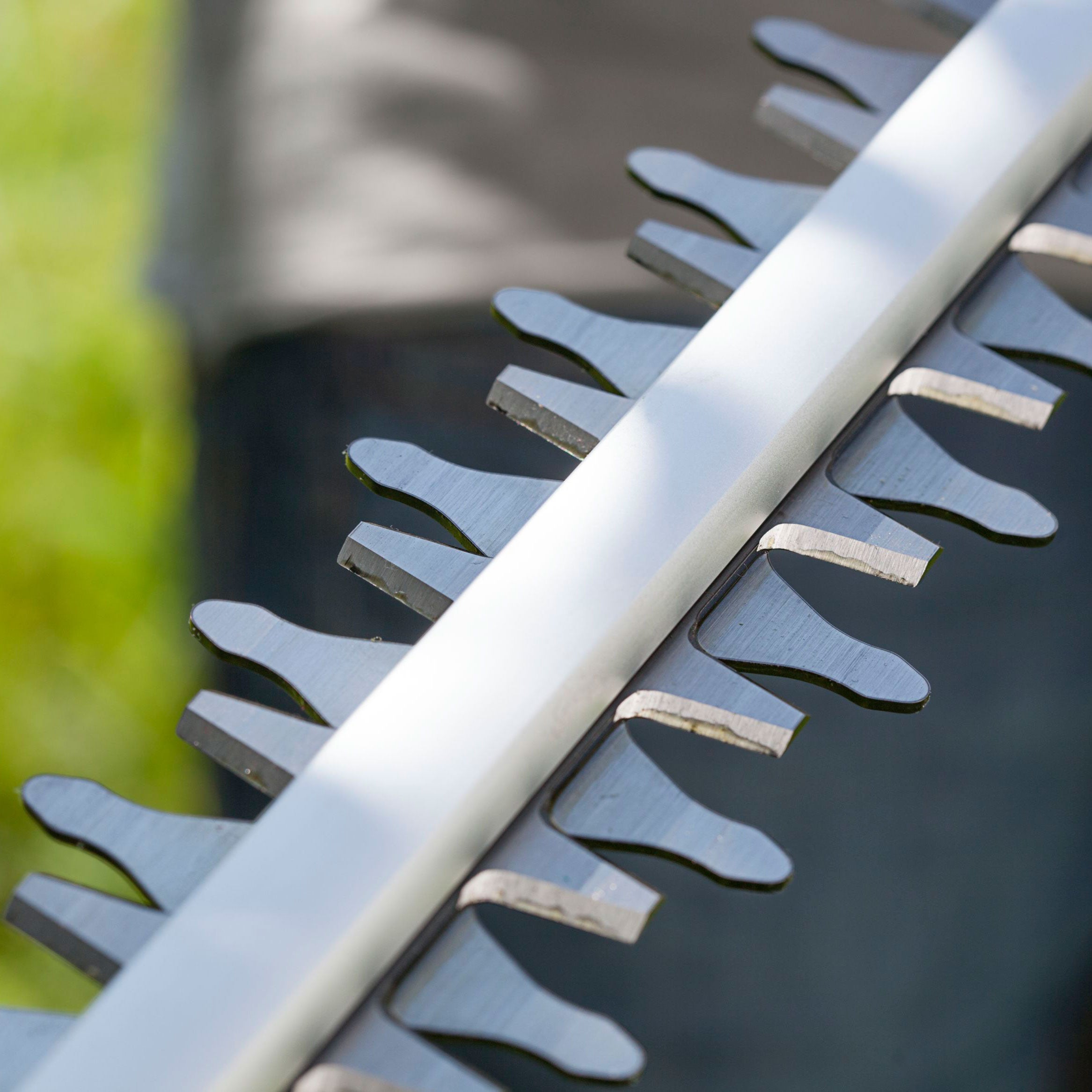 Duurzame, vlijmscherpe messen De Gardena THS 500/48 staat garant voor een perfect resultaat. Deze heggenschaar heeft een optimale mesgeometrie en precisiegesneden messen voor een snelle en zuivere snit. De messen staan bovendien garant voor een lange levensduur.