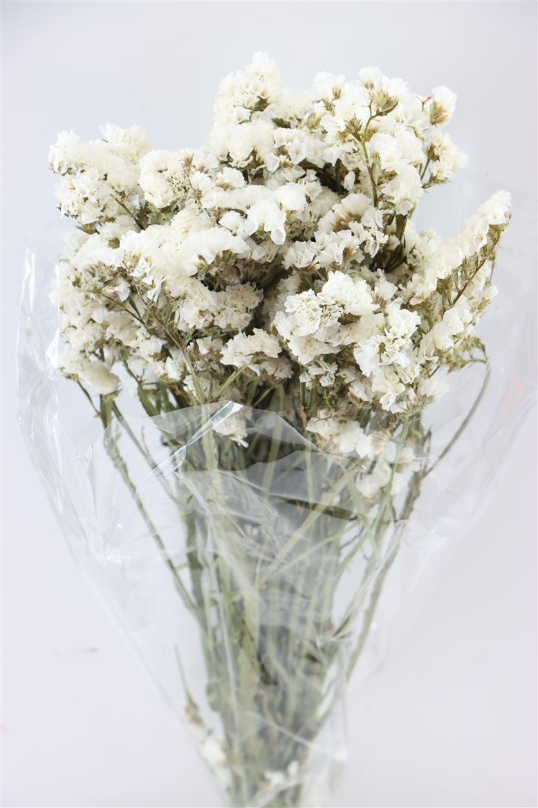 Mooie bossen gedroogde Statice - Limonium - Lamsoor in de kleur wit. Lengte ongeveer 65 centimeter