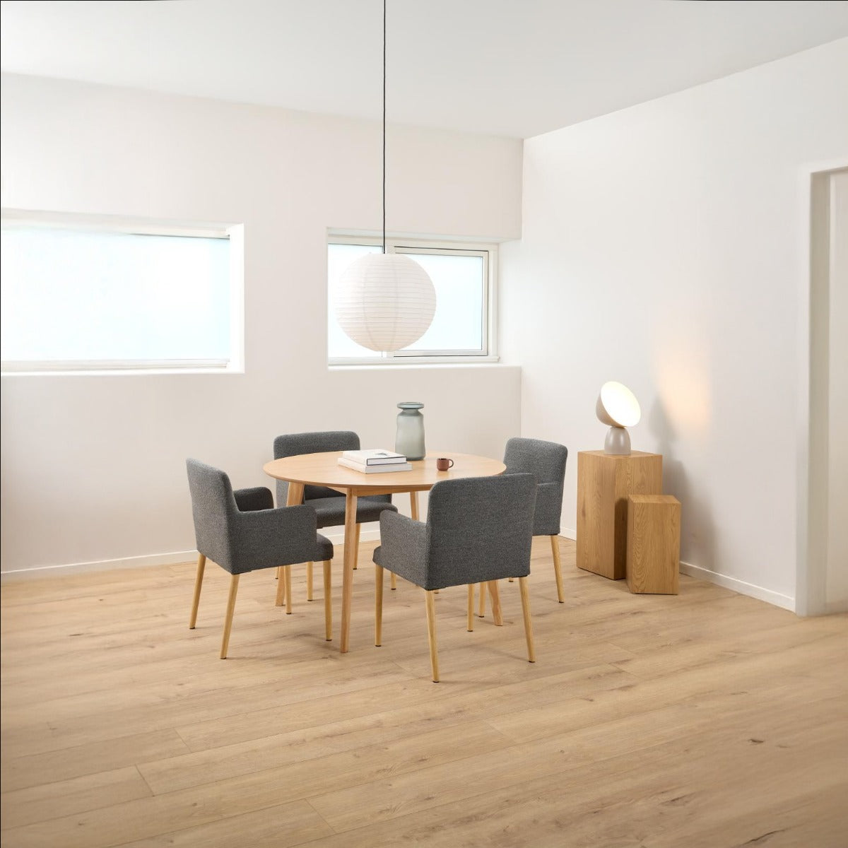 De Eetkamerstoel Zumen met armleuning in Antraciet Monza van Giga Living is een stijlvolle toevoeging aan je interieur. Deze stoel straalt een Scandinavische stijl uit en is gemaakt van hoogwaardige stof en rubberhout. De antracietkleurige bekleding geeft de stoel een moderne uitstraling, terwijl het ontwerp zorgt voor comfort en duurzaamheid. Perfect voor langdurig gebruik in je eetkamer, biedt deze stoel een comfortabele zitervaring dankzij de armleuningen en de ergonomische vormgeving.