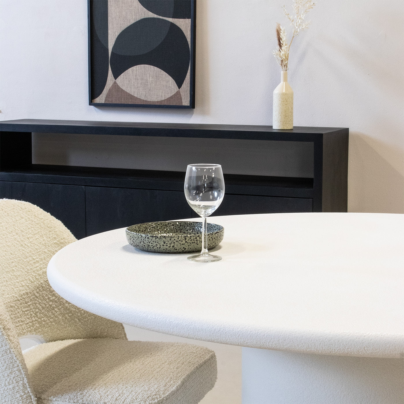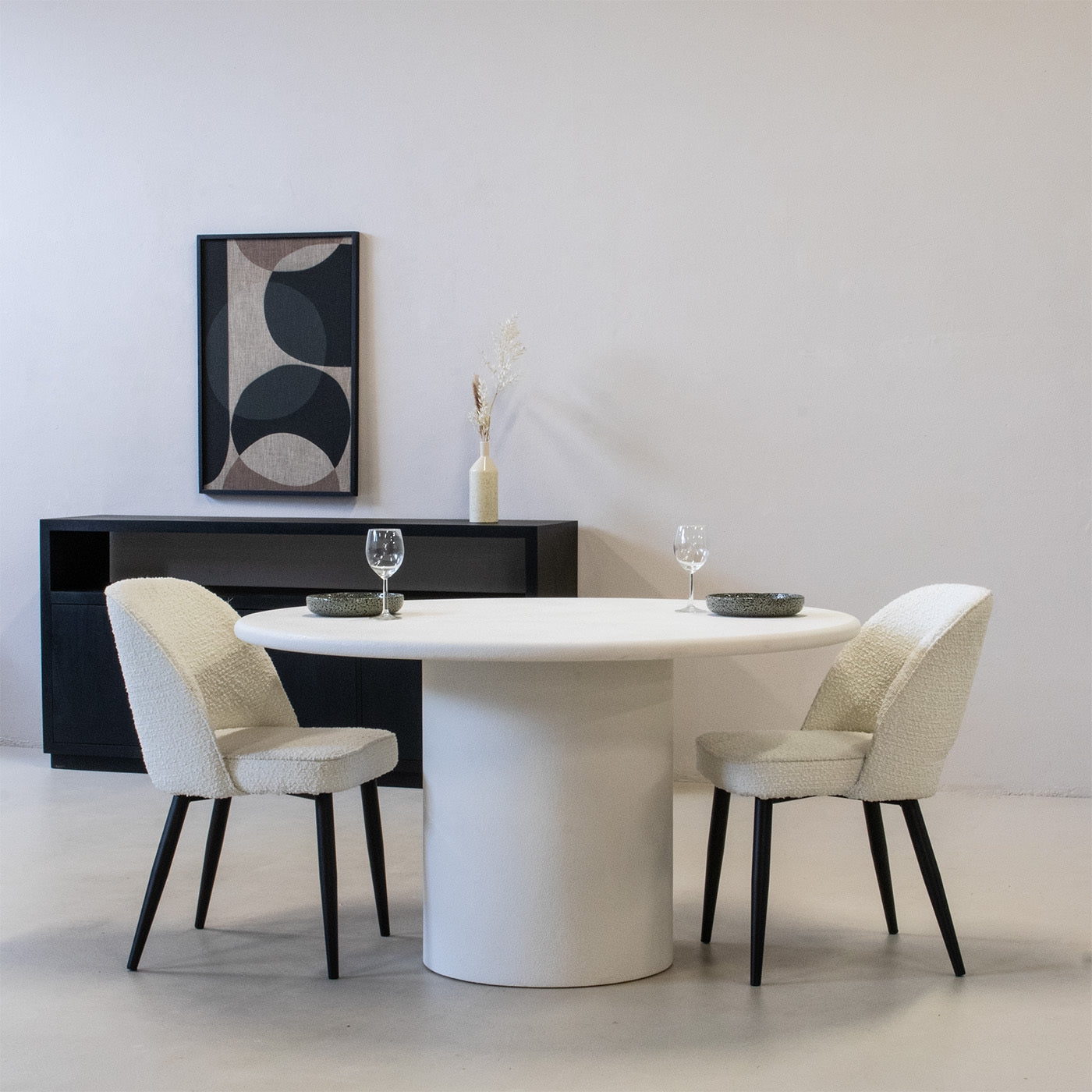 - De ronde eettafel "Flow" van 135 cm in off white uitvoering van Giga Living combineert eigentijdse stijl met gezelligheid.