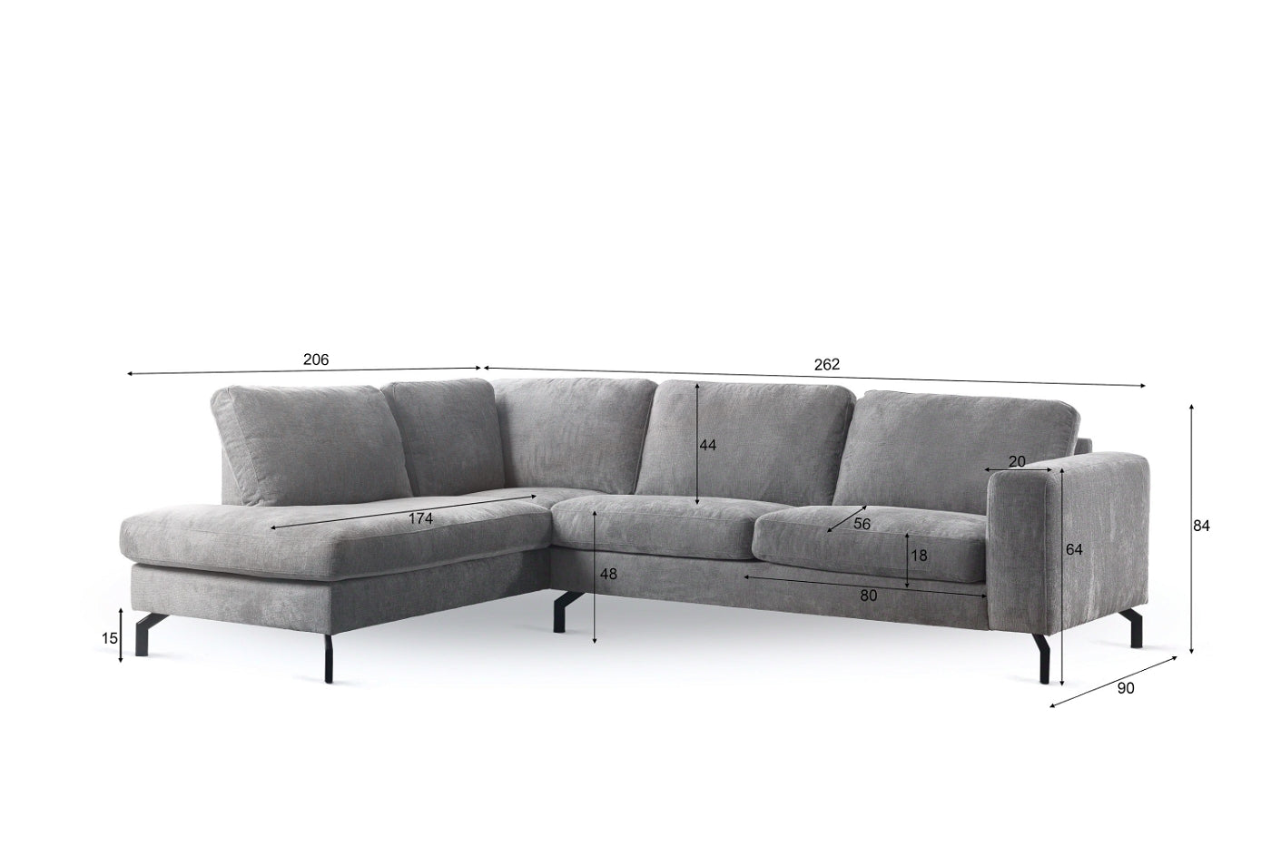 Ontdek de perfecte aanvulling op jouw woonkamer met de 3-Zits Hoekbank Perfect Harmony van Giga Meubel. Deze ruime hoekbank combineert moeiteloos stijl met comfort, en is ontworpen om in elk interieur te passen. Of je nu een filmavond plant met vrienden of een gezellige leeshoek wilt creëren, deze bank biedt het allemaal. Met afmetingen van 262x206x84cm en een zitdiepte van 56 cm, biedt deze bank voldoende ruimte voor het hele gezin. De stoffen bekleding, verkrijgbaar in de kleuren grijs of champagne, voegt een vleugje elegantie toe aan je woonruimte, terwijl het stalen frame zorgt voor duurzaamheid en stabiliteit. Kies tussen een rechtse of linkse uitvoering om perfect aan te sluiten bij jouw woonruimte.
