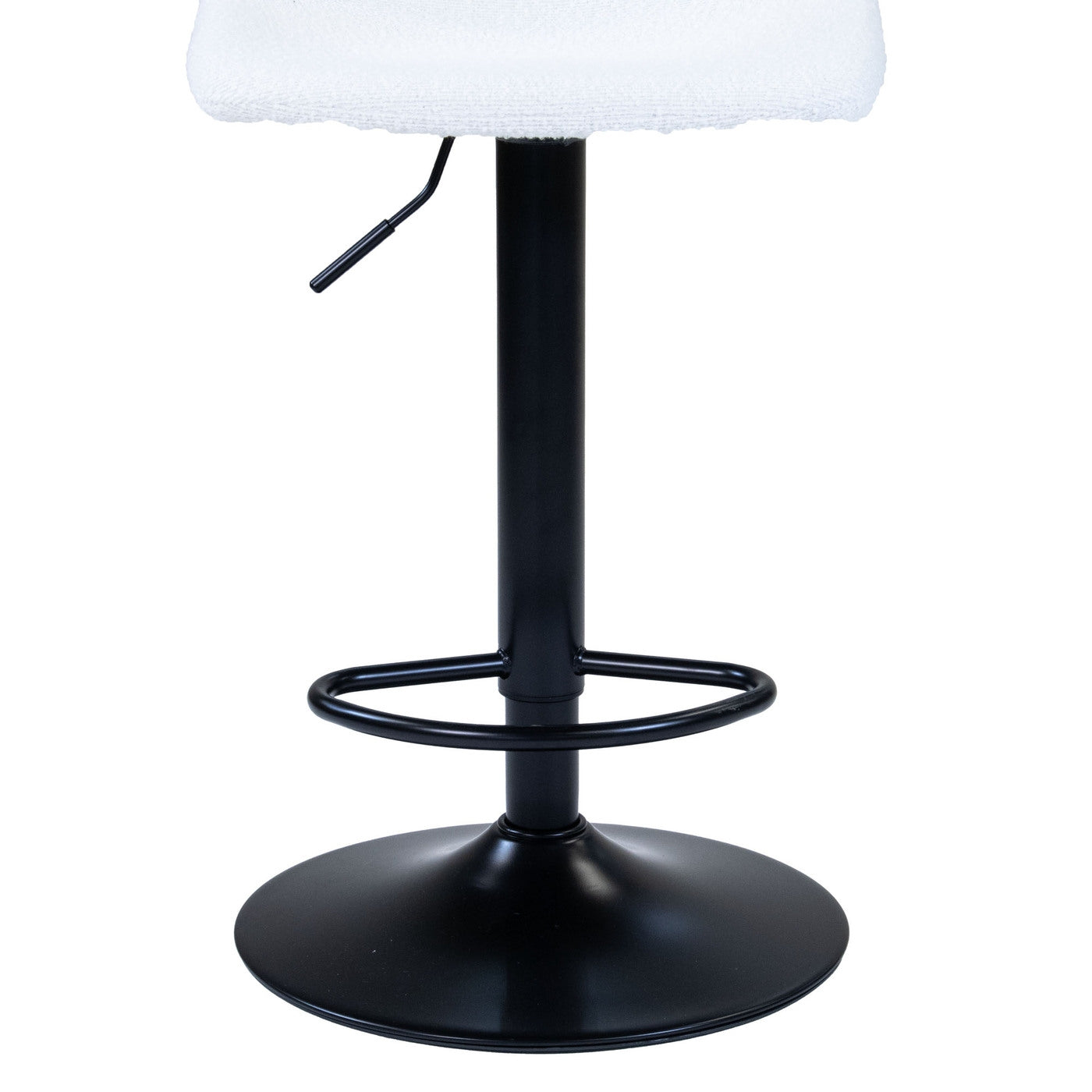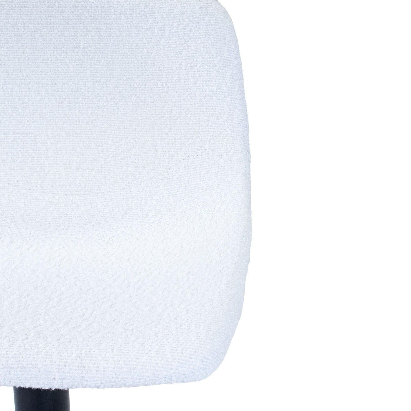 Materiaal: De zitting van de barkruk is vervaardigd uit hoogwaardig bouclé, wat zorgt voor een zacht en comfortabel zitoppervlak.