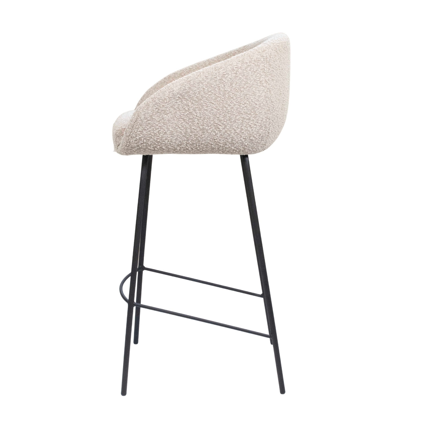 Materiaal: De zitting van de barkruk is gemaakt van stof/textiel, wat zorgt voor een comfortabele zitervaring. Het onderstel is vervaardigd uit metaal, waardoor de barkruk stevig en duurzaam is.