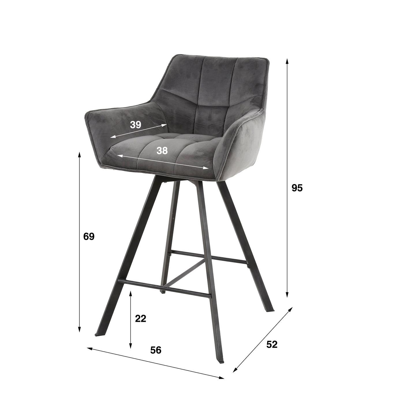 Barstoel Raster Draaibaar Velours Antraciet - Giga Meubel