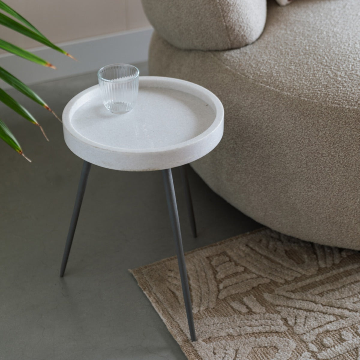Materiaal: Het tafelblad van de Bijzettafel Karrara is vervaardigd uit hoogwaardig marmer, wat zorgt voor een luxe en tijdloze uitstraling. Het onderstel is gemaakt van stevig ijzer, wat bijdraagt aan de duurzaamheid en stabiliteit van de tafel.