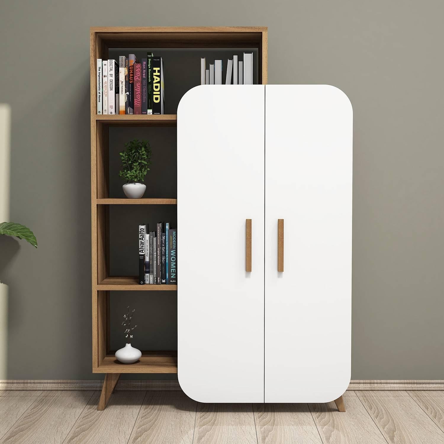 - Deels dichte kast met openslaande deuren biedt zowel verborgen als zichtbare opbergruimte