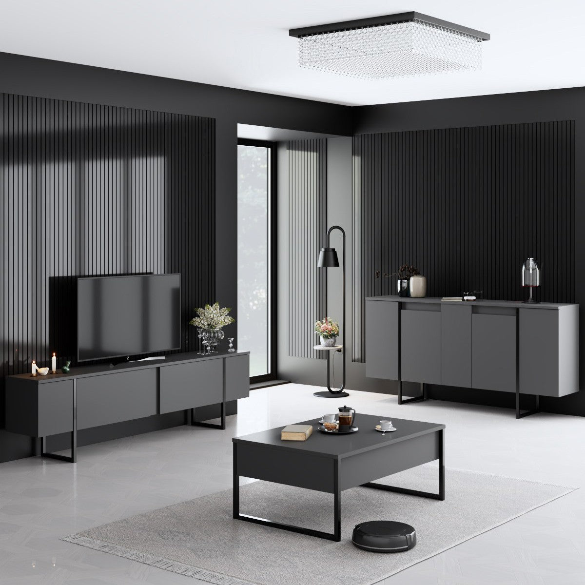 Ontdek het Dressoir Luxe Antraciet/Zwart, een prachtig meubelstuk dat perfect past binnen een industrieel interieur. Dit dressoir is vervaardigd uit hoogwaardig metaal en melamine, wat zorgt voor een robuuste uitstraling en duurzaamheid. De antracietkleurige afwerking geeft het dressoir een moderne en stijlvolle look, ideaal voor elke woonkamer of eetkamer. Met zijn strakke lijnen en praktische ontwerp biedt dit dressoir niet alleen esthetische waarde, maar ook functionele opbergruimte voor al je spullen.