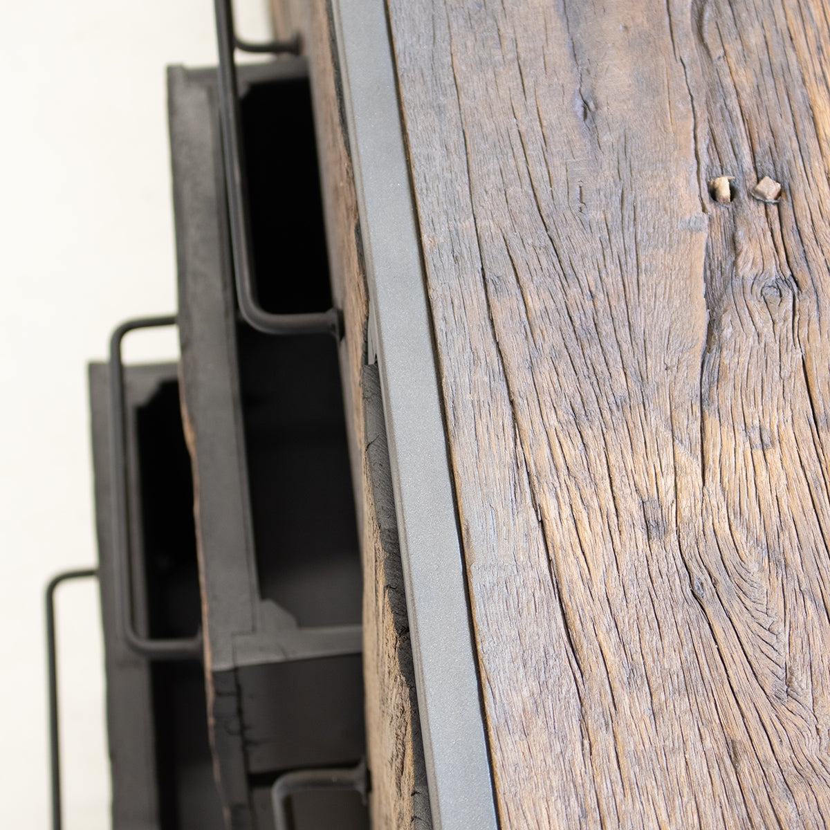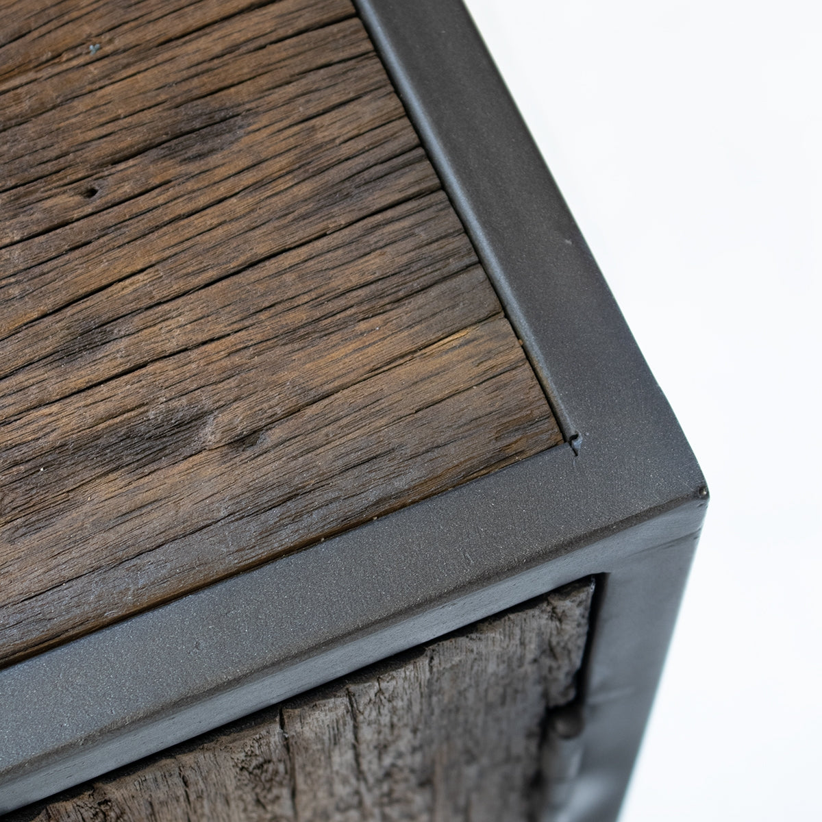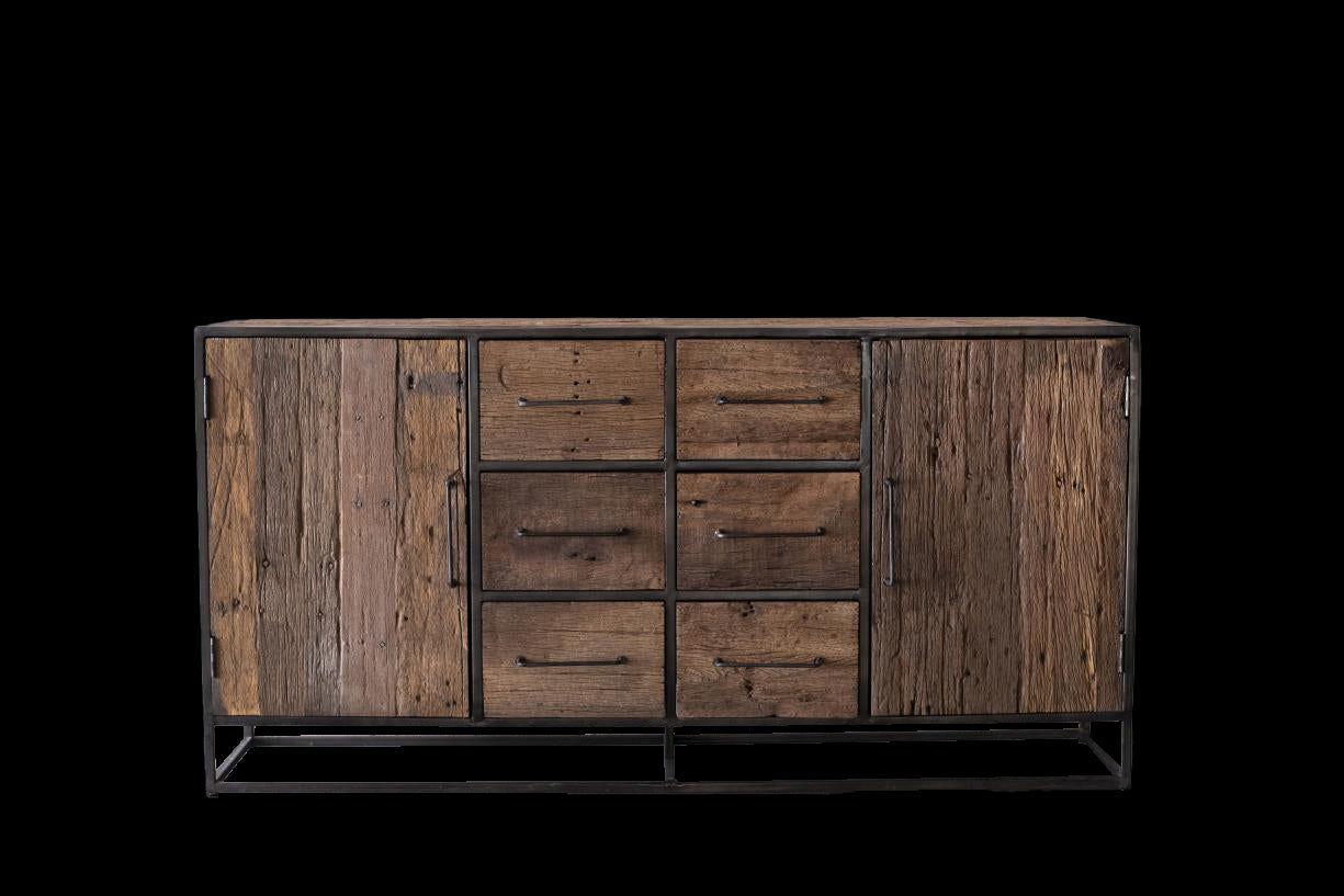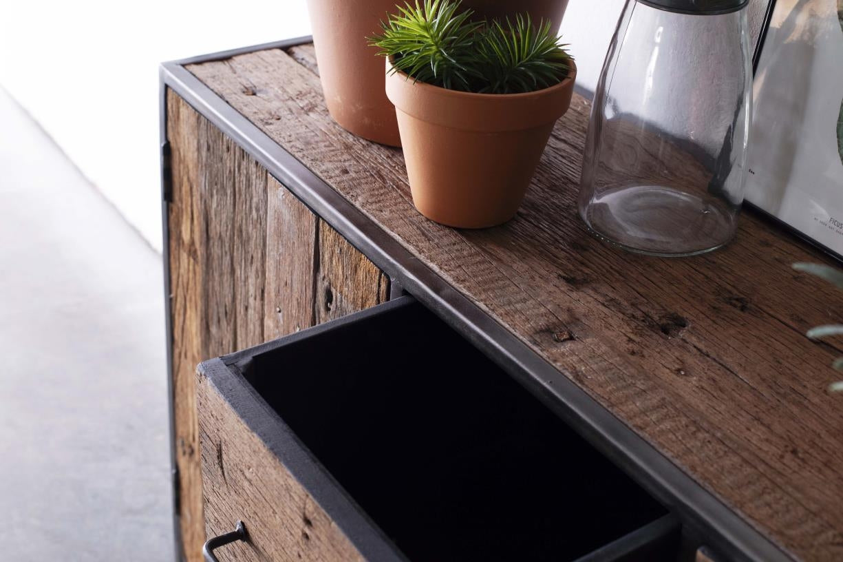 Materiaal: Het dressoir is gemaakt van gerecycled hout en metaal, wat zorgt voor een stevige en duurzame constructie. Het gebruik van gerecycled materiaal draagt bovendien bij aan een milieuvriendelijke keuze.