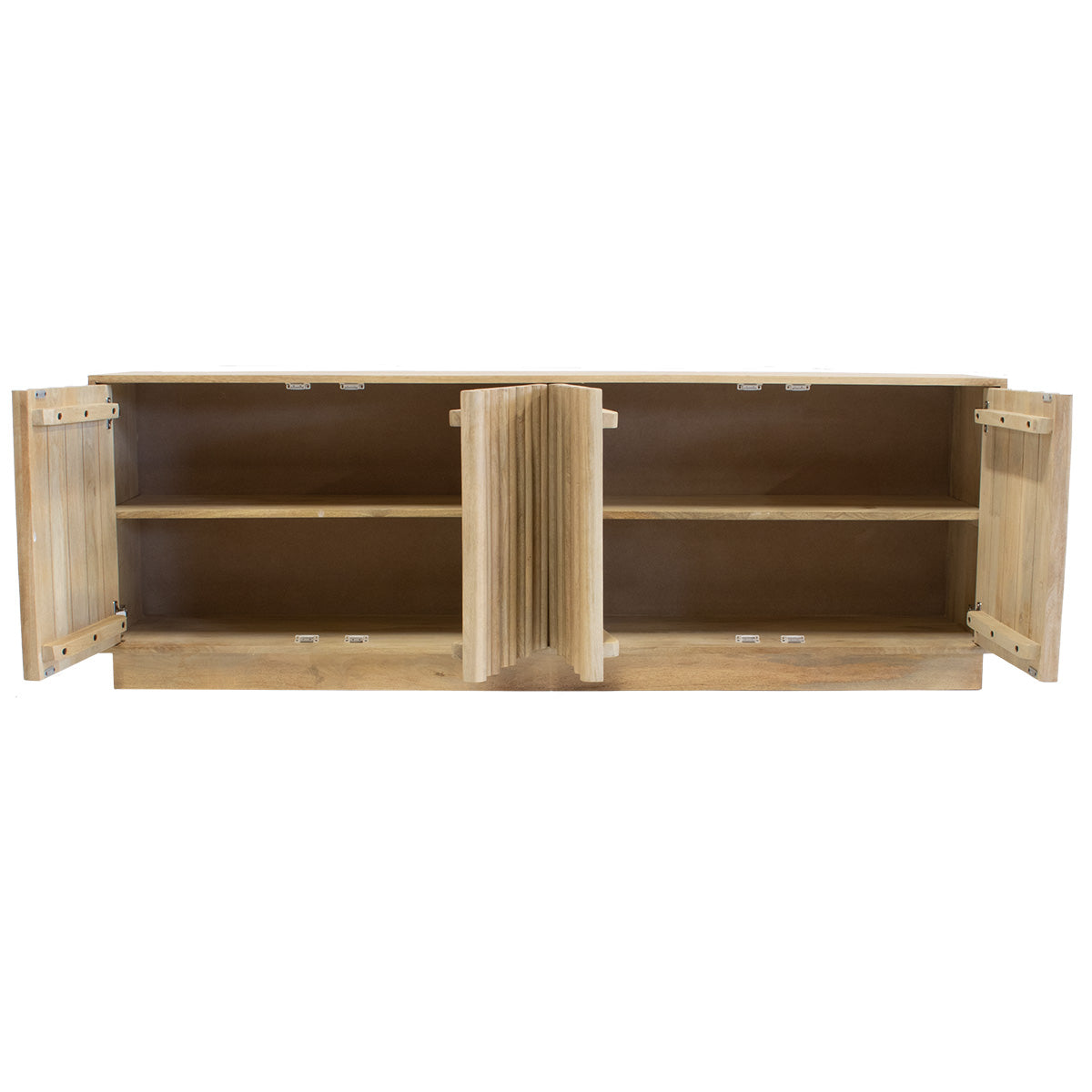 Materiaal: Het dressoir is gemaakt van mangohout, een duurzaam materiaal dat bekend staat om zijn robuustheid en unieke nerfpatronen. Mangohout is niet alleen sterk, maar ook milieuvriendelijk, waardoor je met een gerust hart kunt genieten van dit prachtige meubelstuk.