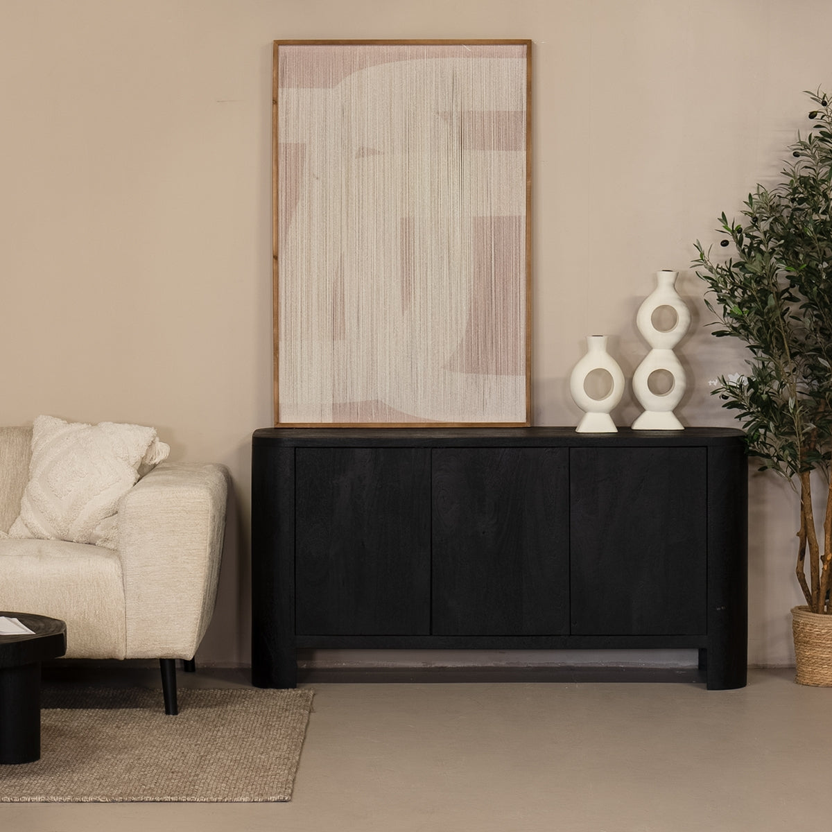 Dressoir Mitchel Zwart 150cm Mangohout - Giga Meubel