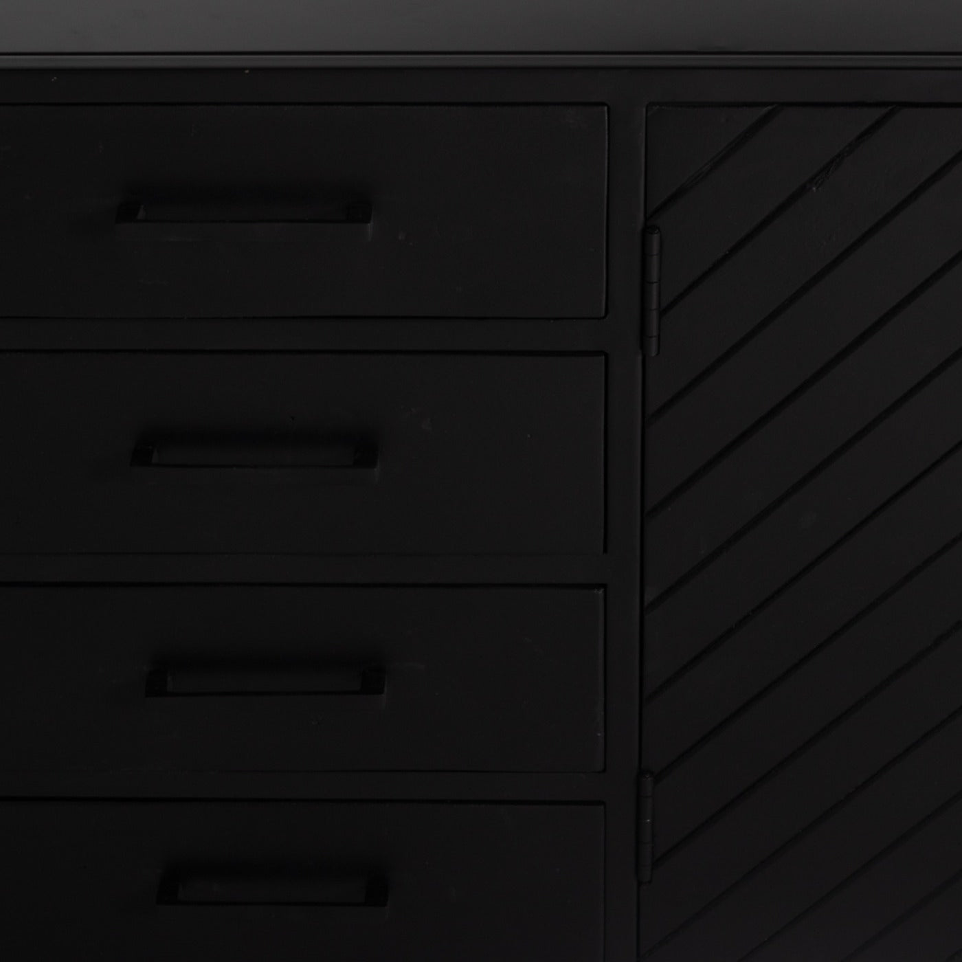 Dit industriële dressoir, vervaardigd uit een combinatie van mangohout en metaal, is de perfecte aanvulling op elk modern interieur. De zwarte kleur geeft het een chique en tijdloze uitstraling, terwijl het gebruik van mangohout zorgt voor een warme en natuurlijke touch. Met zijn ruime opbergmogelijkheden, inclusief vier lades en vier vakken, biedt dit meubelstuk niet alleen stijl maar ook functionaliteit. Het is een eyecatcher die zowel kwaliteit als praktisch gebruiksgemak biedt.
