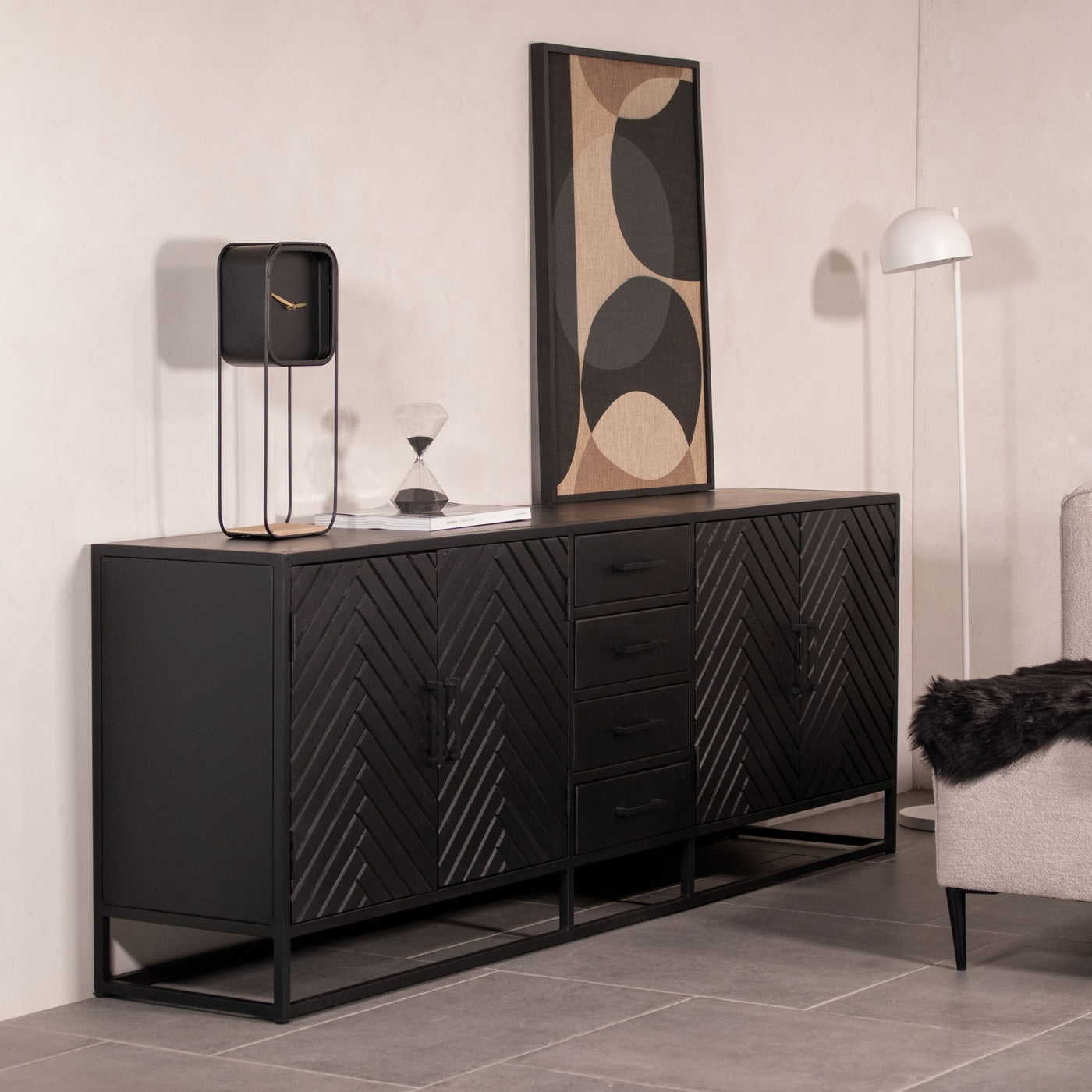 Dressoir Isa Zwart Visgraat Groot Mangohout - Giga Meubel