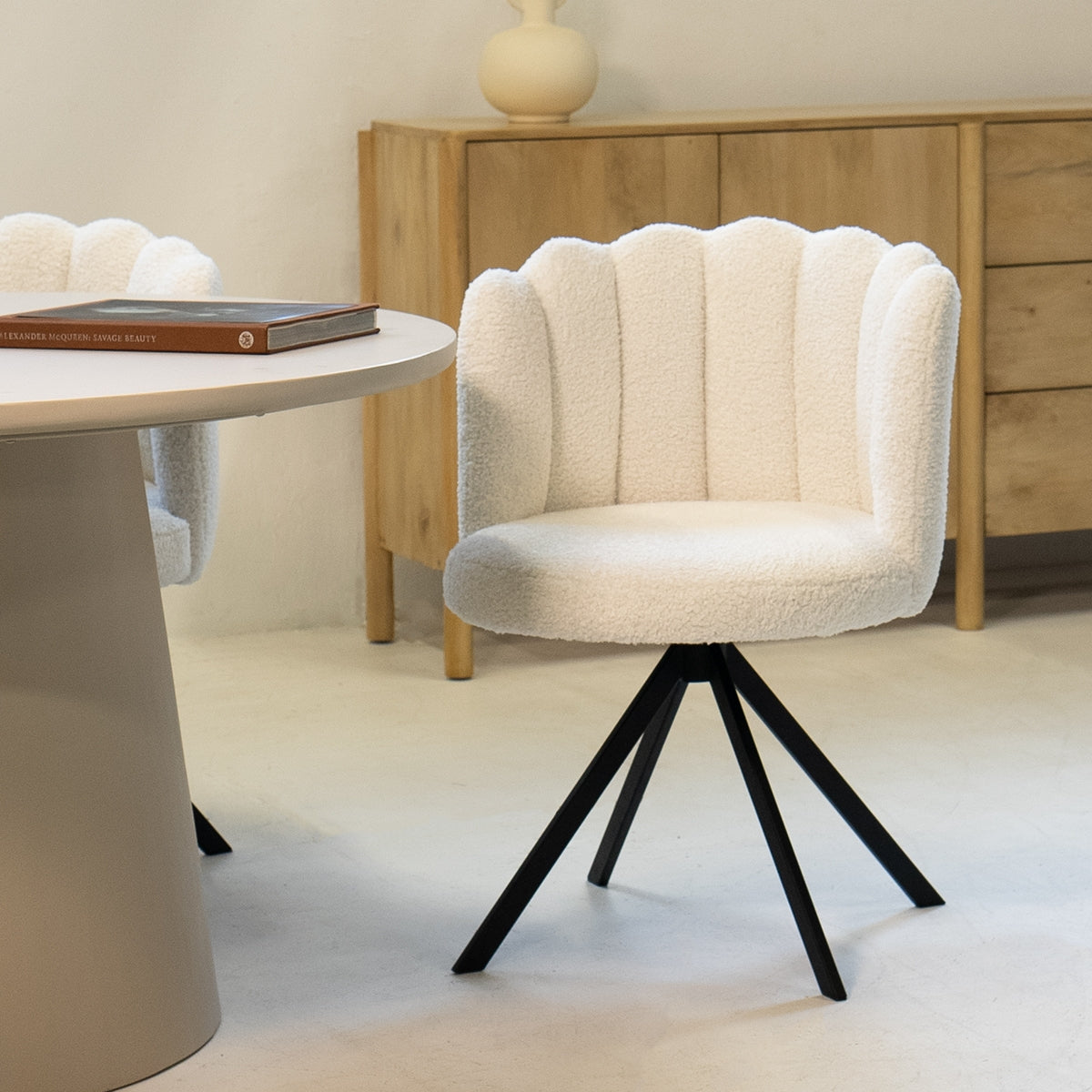 Eetkamerstoel Julien Draaibaar Teddy Wit - Giga Meubel