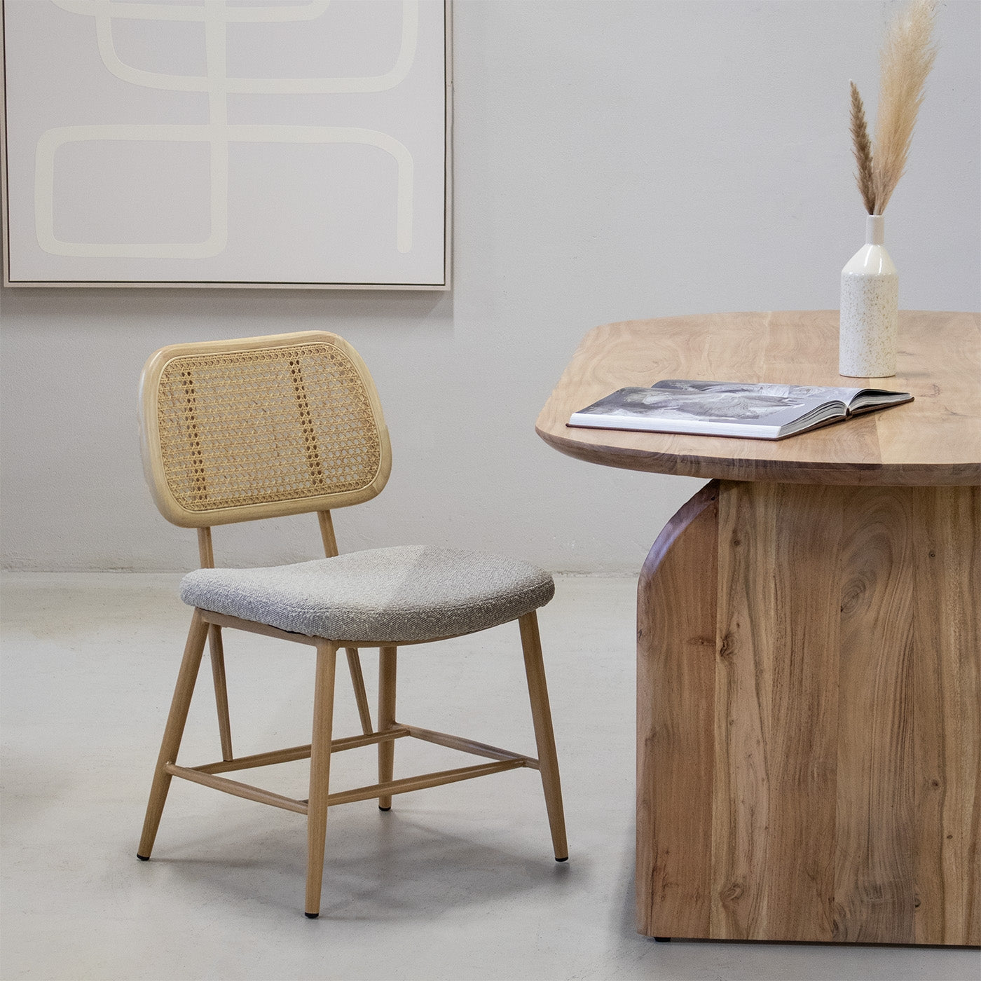 Maak kennis met de Eetkamerstoel Nienke Beige, een ware eyecatcher in elk interieur. Deze stoel, perfect voor de liefhebber van de Bohemian stijl, combineert de natuurlijke houtlook met het industriële van metaal. De beige stoffen zitting zorgt niet alleen voor een warme uitstraling, maar biedt ook optimaal comfort. Ideaal voor lange avonden aan de eettafel of als stijlvolle toevoeging aan je werkplek.