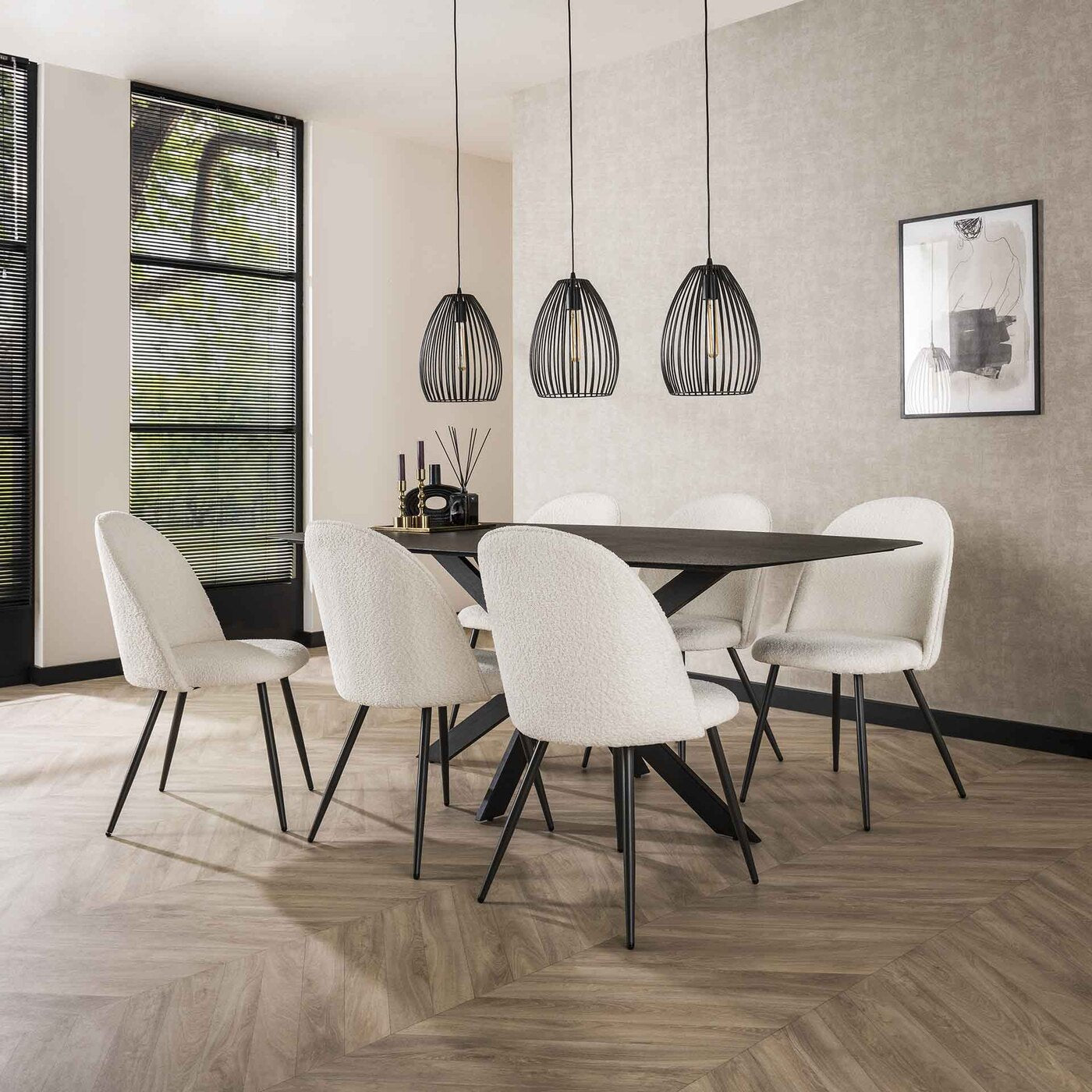 Materiaal: Deze eetkamerstoel is bekleed met hoogwaardig bouclé-materiaal, wat zorgt voor een zachte en comfortabele zitervaring. Bouclé is bekend om zijn duurzaamheid en luxe uitstraling, waardoor het een uitstekende keuze is voor dagelijks gebruik.