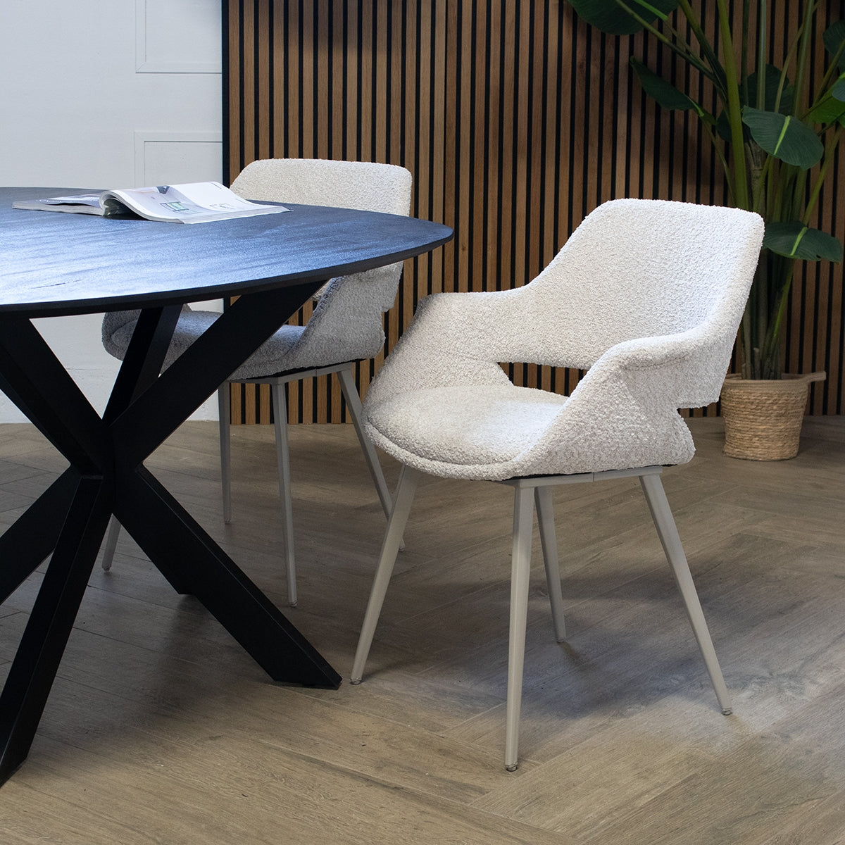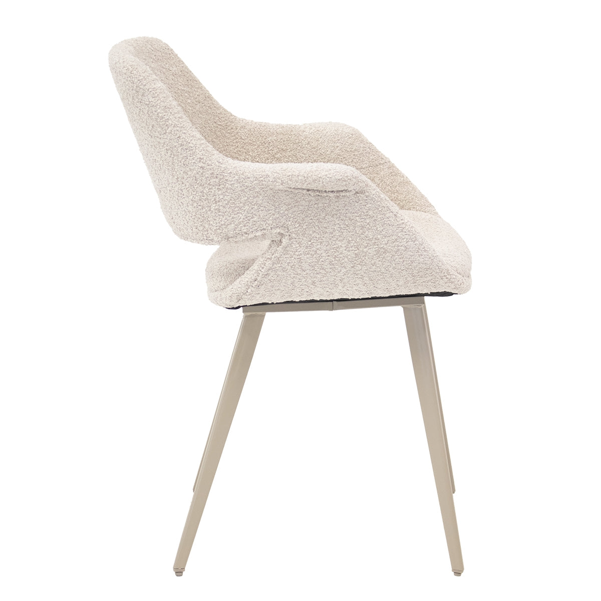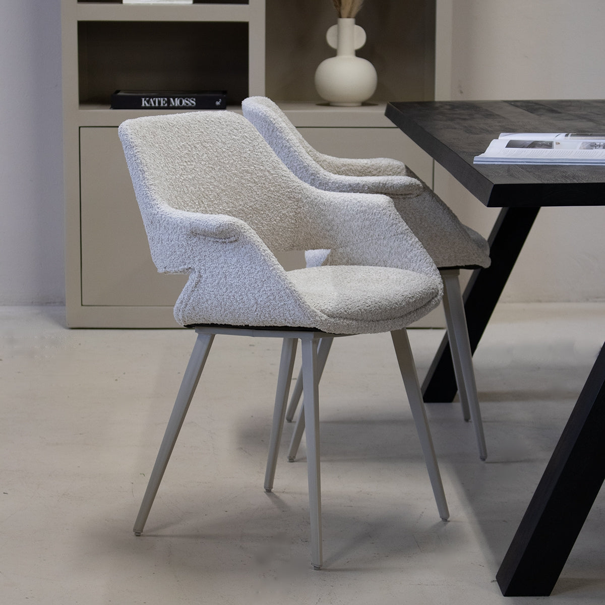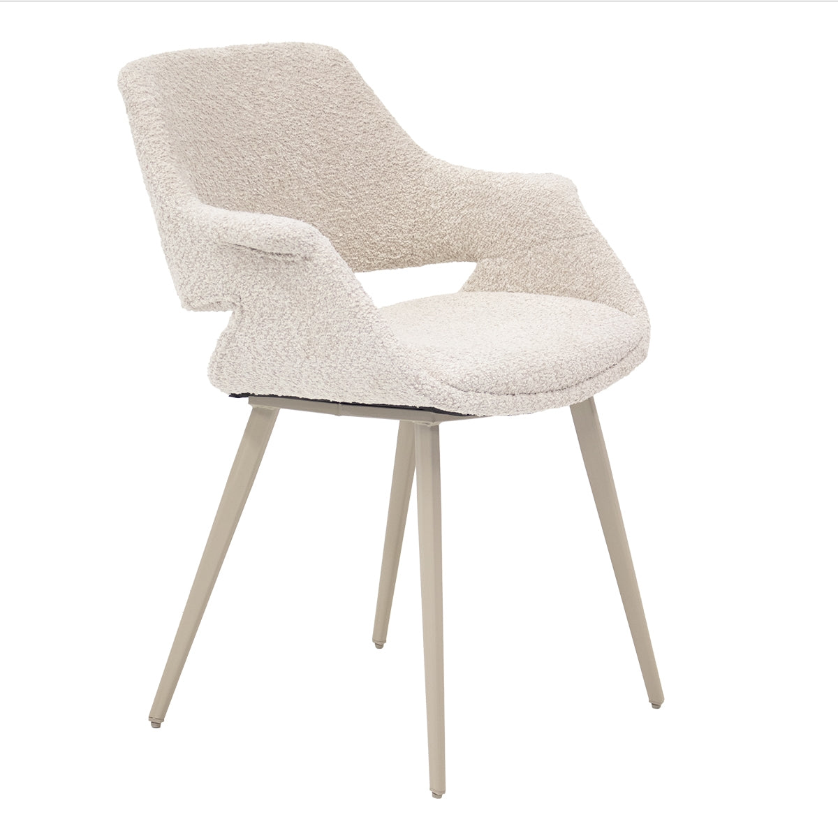 De Eetkamerstoel Jess in een stijlvol beige kleur is een perfecte toevoeging aan elk Scandinavisch interieur. Deze stoel combineert comfort met een modern design, waarbij de zachte stoffen bekleding en het stevige metalen frame zorgen voor zowel duurzaamheid als stijl. De stoel is niet alleen een eyecatcher in je eetkamer, maar ook ontworpen om comfortabel te zitten tijdens lange diners of gezellige avonden met vrienden en familie.